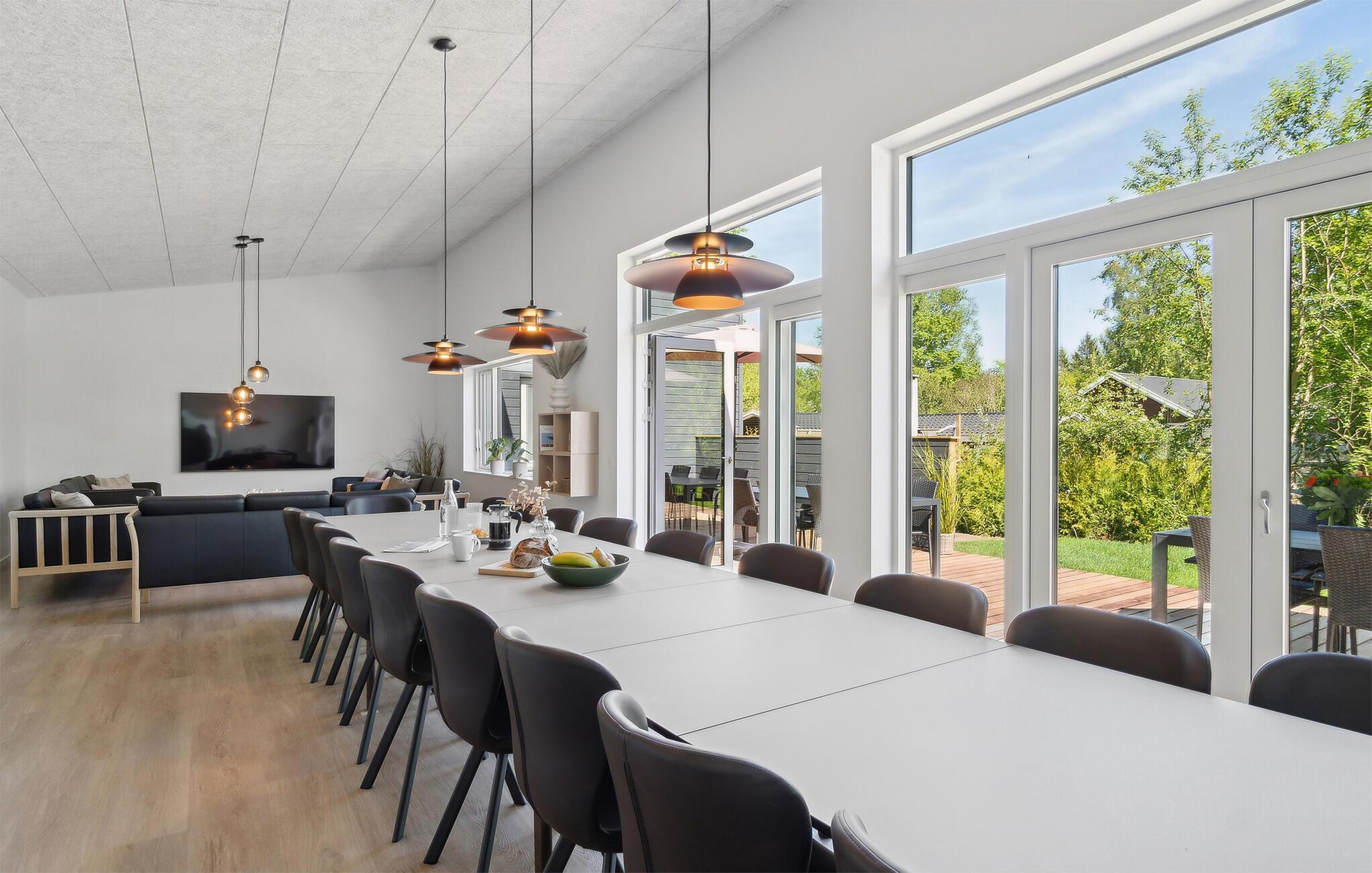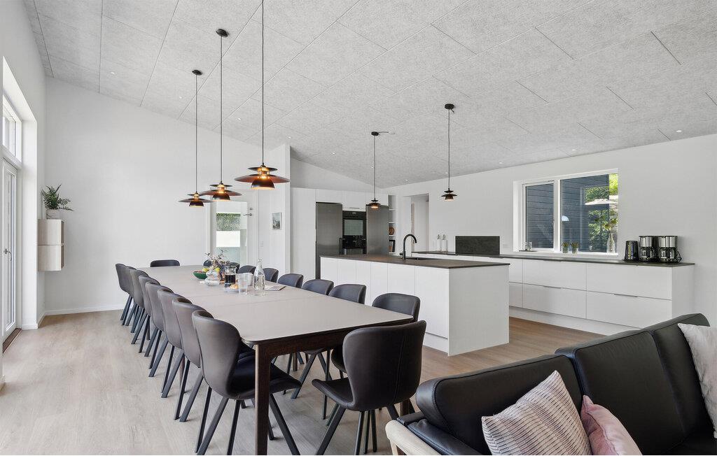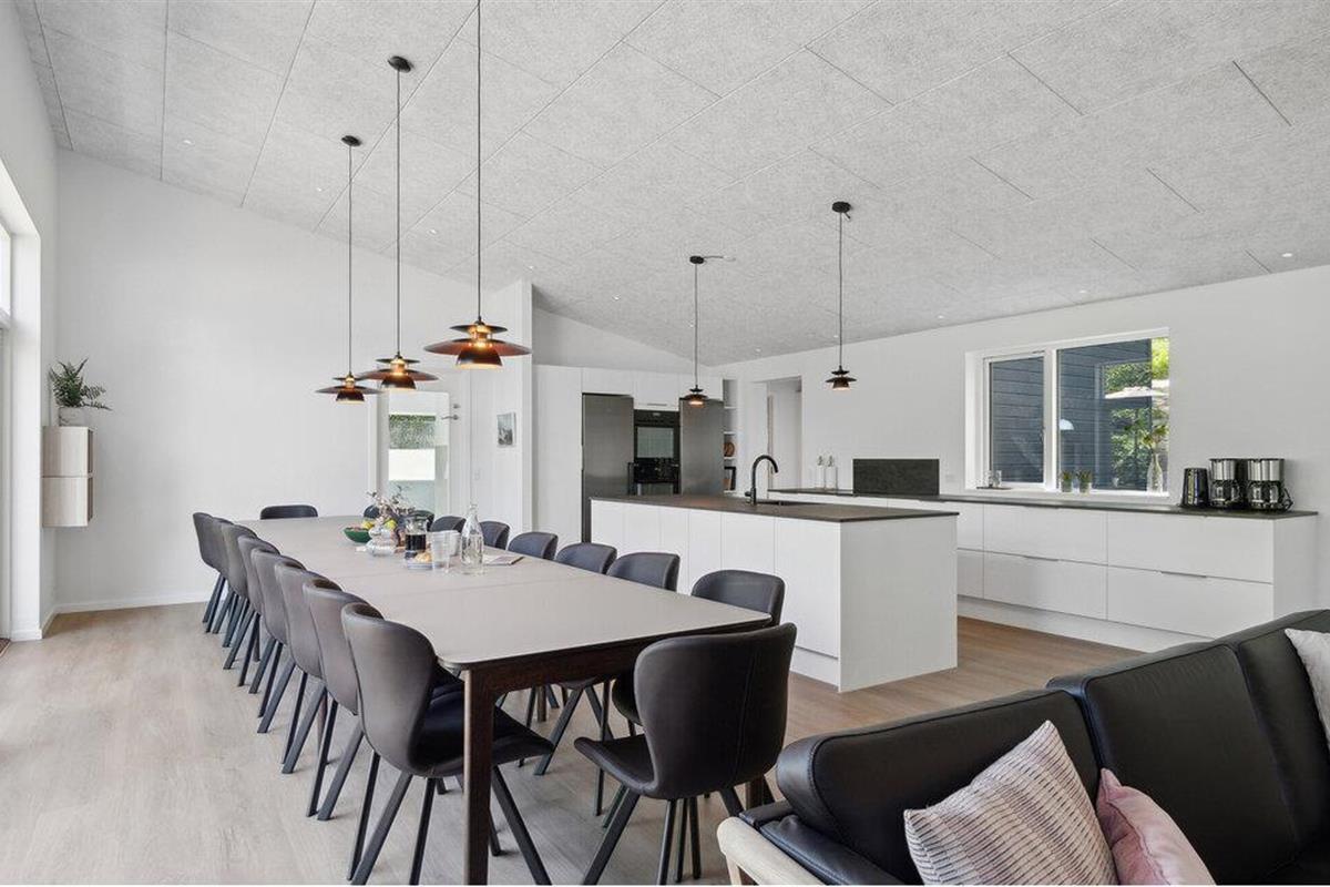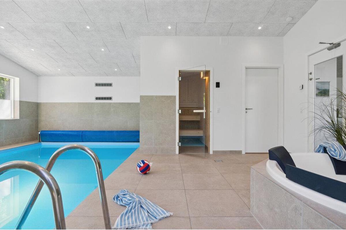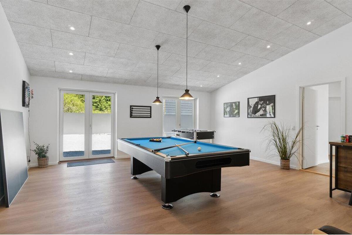 Stap binnen in dit moderne vakantiehuis in Rågeleje, een van de mooiste vakantiegebieden in Denemarken. Het huis biedt ruimte voor meerdere gezinnen of een grote groep vrienden en nodigt je uit om te genieten van een onvergetelijke vakantie met zijn veelzijdige entertainmentmogelijkheden en luxe ambiance. Na het ontbijt, dat je kunt bereiden in de stijlvolle, open keuken en kunt eten aan de lange, elegante eettafel, is het misschien tijd voor leuke activiteiten in de speelruimte van je vakantiehuis. Speel biljart, tafelvoetbal en tafeltennis en bepaal de Rågeleje vakantiekampioen in de verschillende disciplines. Ontspan en geniet na de sportieve wedstrijden in het overdekte zwembad en de whirlpool. De gezellige woonkamer met comfortabele banken is de ideale plek om te genieten van leuke spelletjes of stimulerende gesprekken met vrienden of familie. In de grote ruimtes, waaronder het zwembad, zijn er veel spotjes met dimmers aan het plafond om bijvoorbeeld 's avonds een bijzonder gezellige sfeer te creëren in de verschillende woonruimtes.