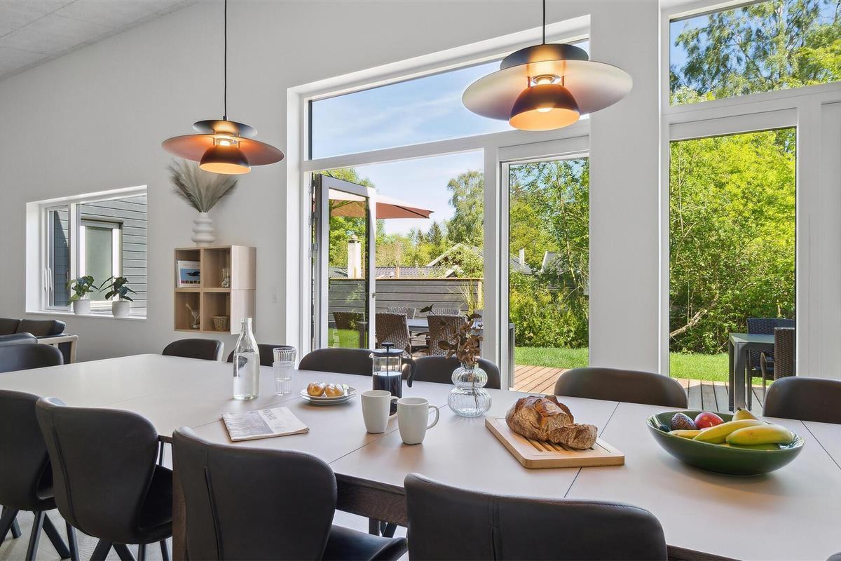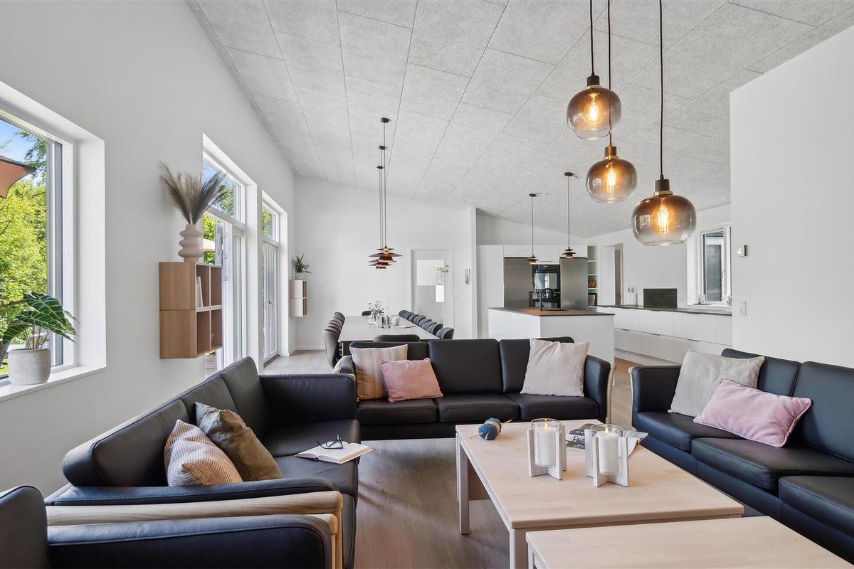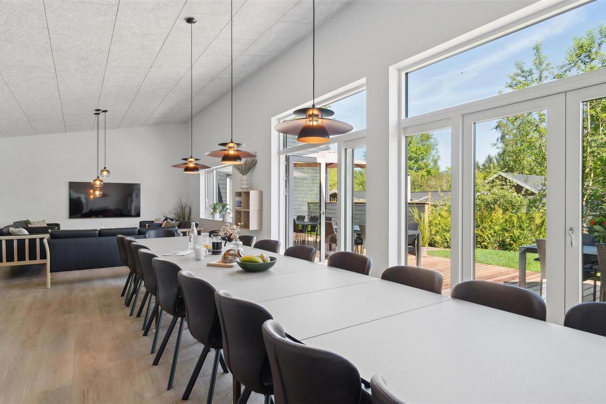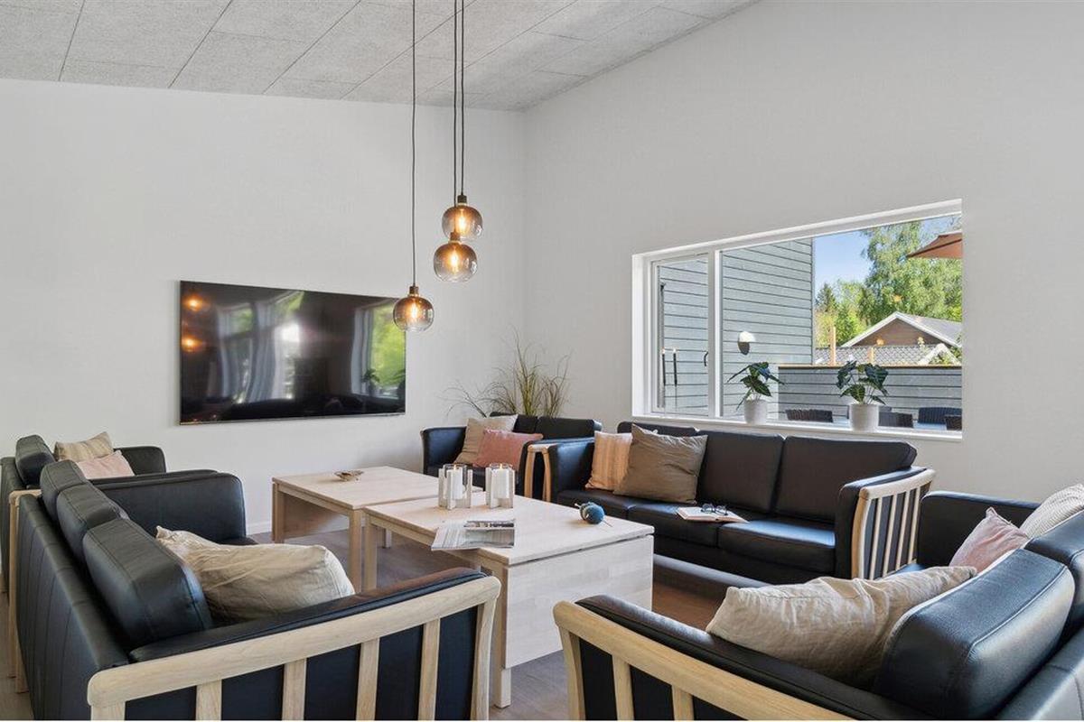 Stap binnen in dit moderne vakantiehuis in Rågeleje, een van de mooiste vakantiegebieden in Denemarken. Het huis biedt ruimte voor meerdere gezinnen of een grote groep vrienden en nodigt je uit om te genieten van een onvergetelijke vakantie met zijn veelzijdige entertainmentmogelijkheden en luxe ambiance. Na het ontbijt, dat je kunt bereiden in de stijlvolle, open keuken en kunt eten aan de lange, elegante eettafel, is het misschien tijd voor leuke activiteiten in de speelruimte van je vakantiehuis. Speel biljart, tafelvoetbal en tafeltennis en bepaal de Rågeleje vakantiekampioen in de verschillende disciplines. Ontspan en geniet na de sportieve wedstrijden in het overdekte zwembad en de whirlpool. De gezellige woonkamer met comfortabele banken is de ideale plek om te genieten van leuke spelletjes of stimulerende gesprekken met vrienden of familie. In de grote ruimtes, waaronder het zwembad, zijn er veel spotjes met dimmers aan het plafond om bijvoorbeeld 's avonds een bijzonder gezellige sfeer te creëren in de verschillende woonruimtes.