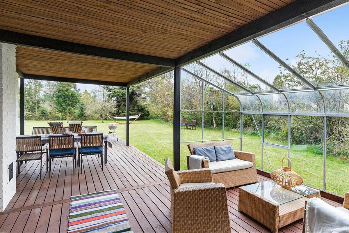 Geniet van een licht vakantiehuis met serre, houtkachel en groot terrein nabij de Deense Rivièra.