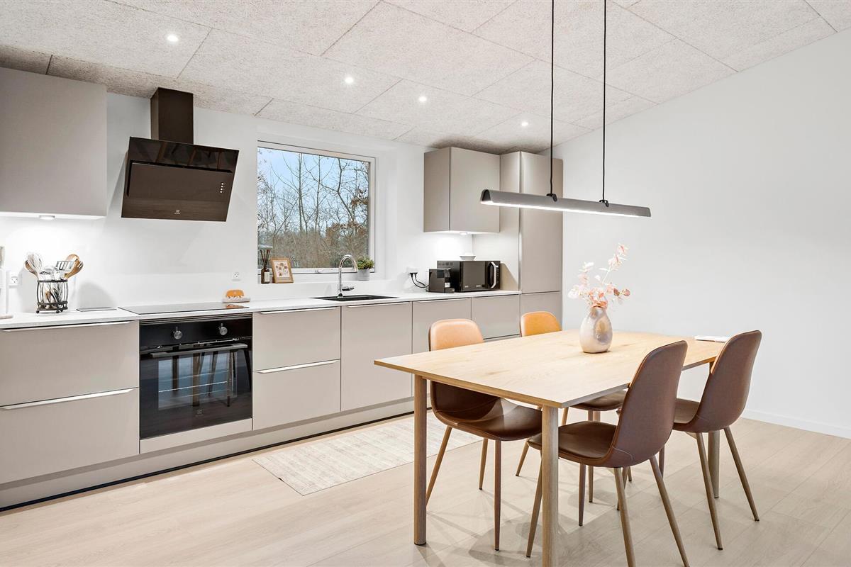 Modern Scandinavisch vakantiehuis in Råsted, ideaal voor ontspanning in de natuur met stijl en comfort.