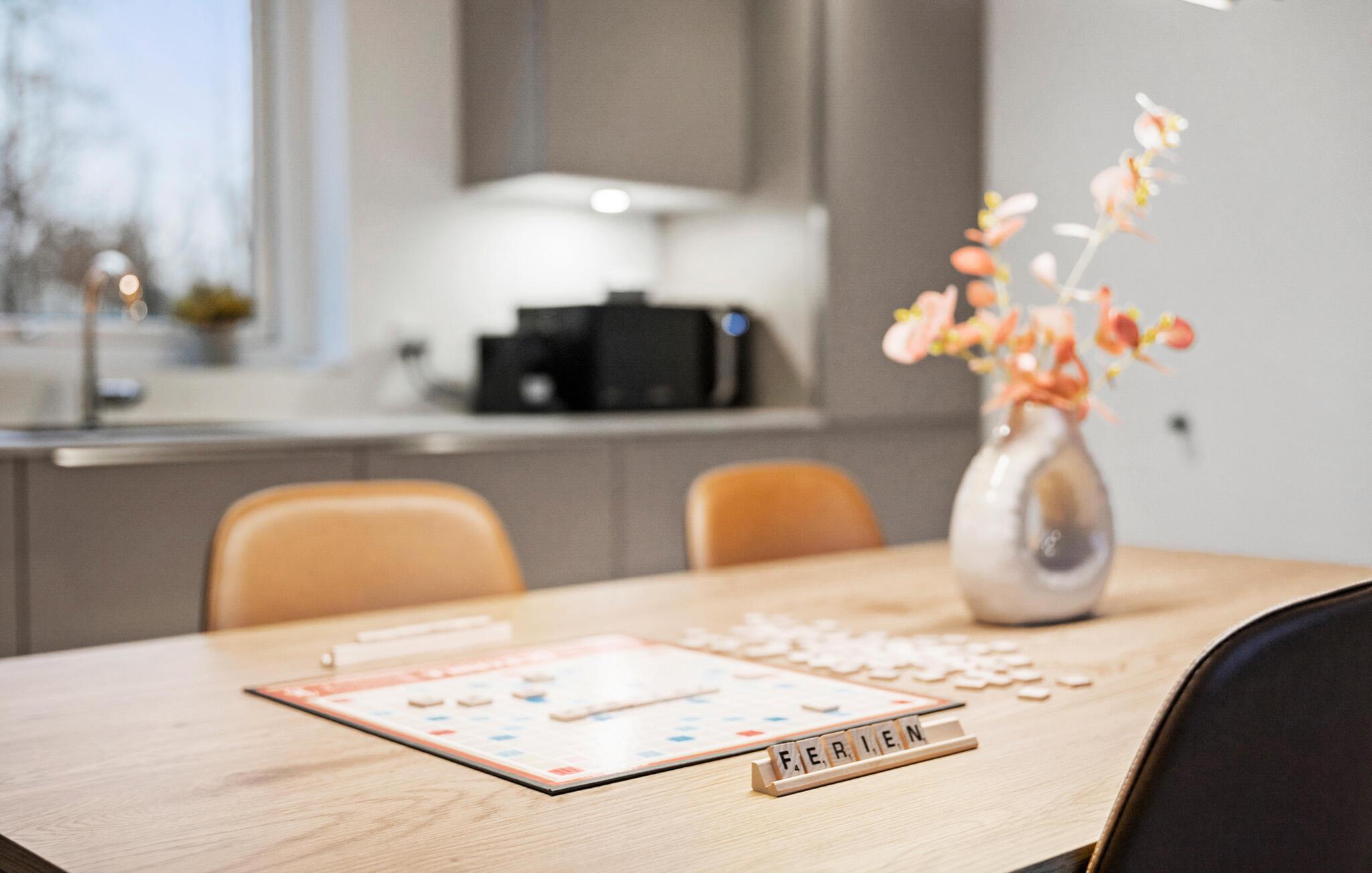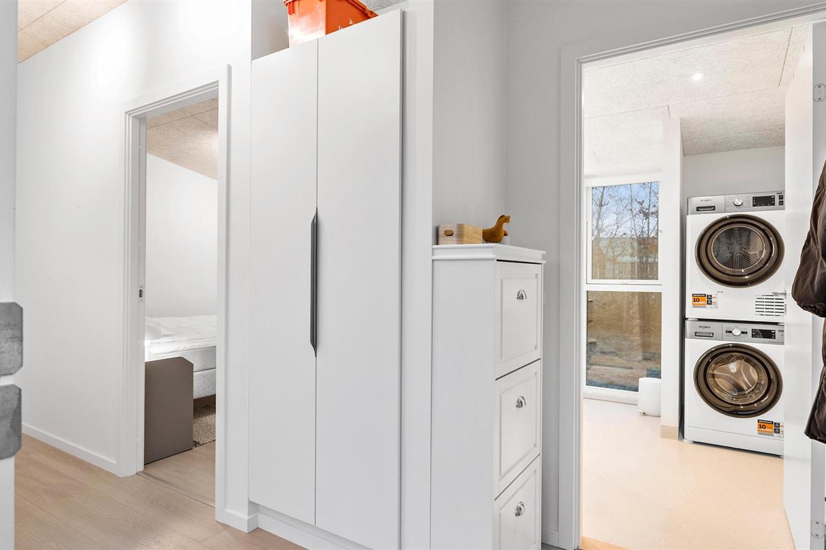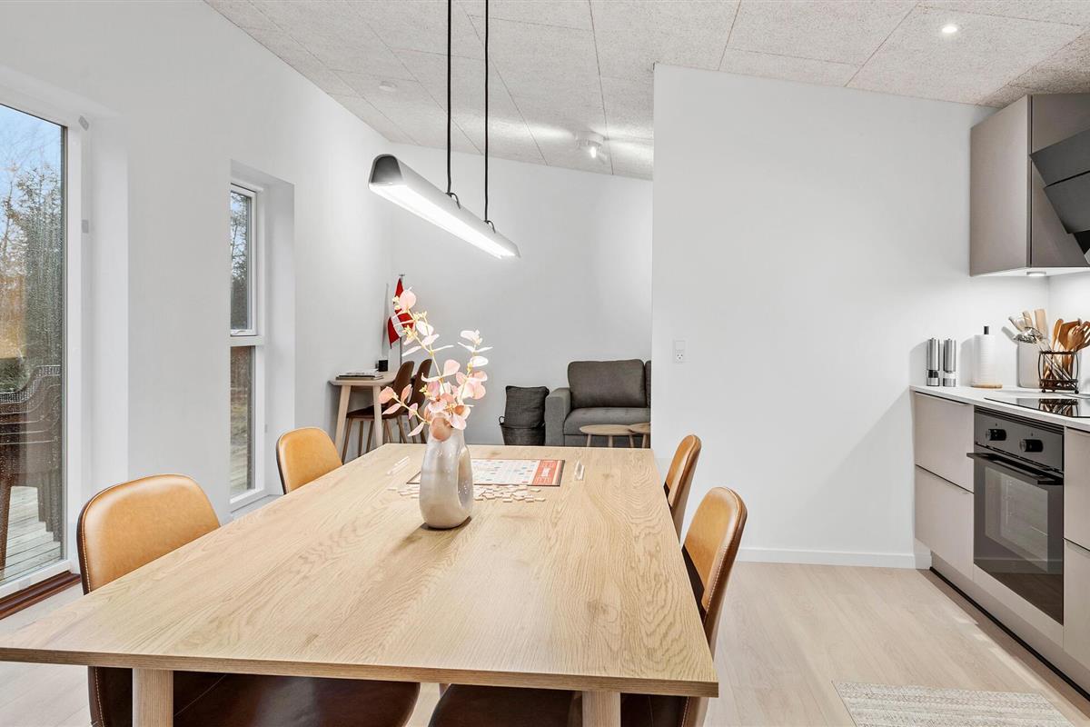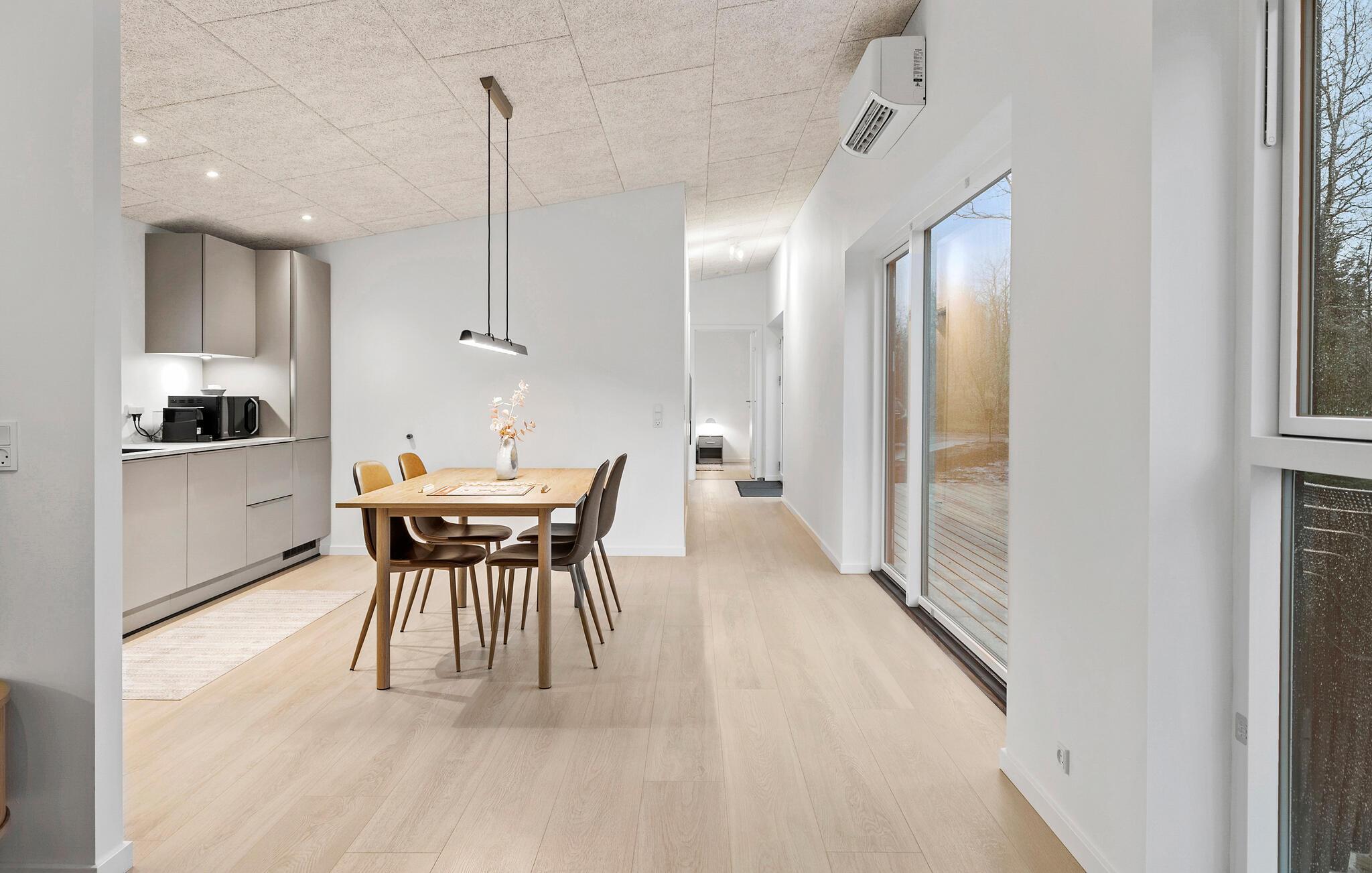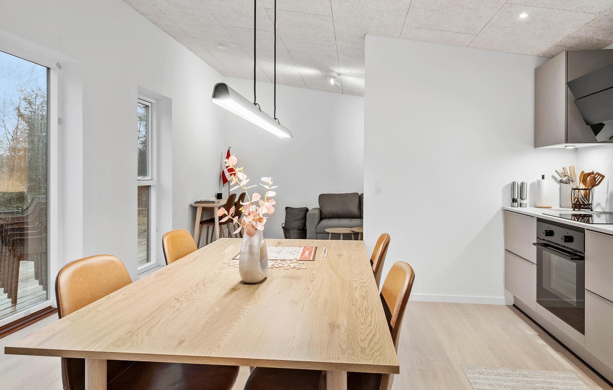 Beleef een speciaal soort time-out in je stijlvolle vakantiehuis in Råsted, dat je alles biedt wat je nodig hebt voor een ontspannen vakantie te midden van een idyllisch landschap. Geniet van de harmonie van comfort en natuur in een omgeving die uitnodigt om te ontspannen. Het huis maakt indruk met zijn moderne, minimalistische inrichting. Grote ramen zorgen voor veel licht en een prachtig uitzicht op het landschap. Ontspan in de gezellige woonkamer of bereid je favoriete gerechten in de keuken. De open eethoek biedt ruimte om 's avonds gezellig samen te zijn, met bordspellen of een gezamenlijk diner. De heldere, Scandinavische esthetiek creëert een warme, uitnodigende sfeer.