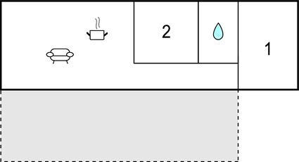 Woonkamer met open keuken - 2 Slaapplaatsen. (Opklapbed(den) of matras(sen)).