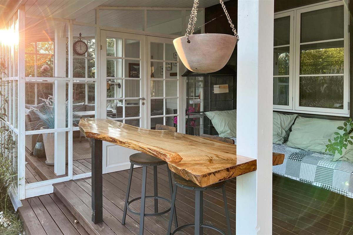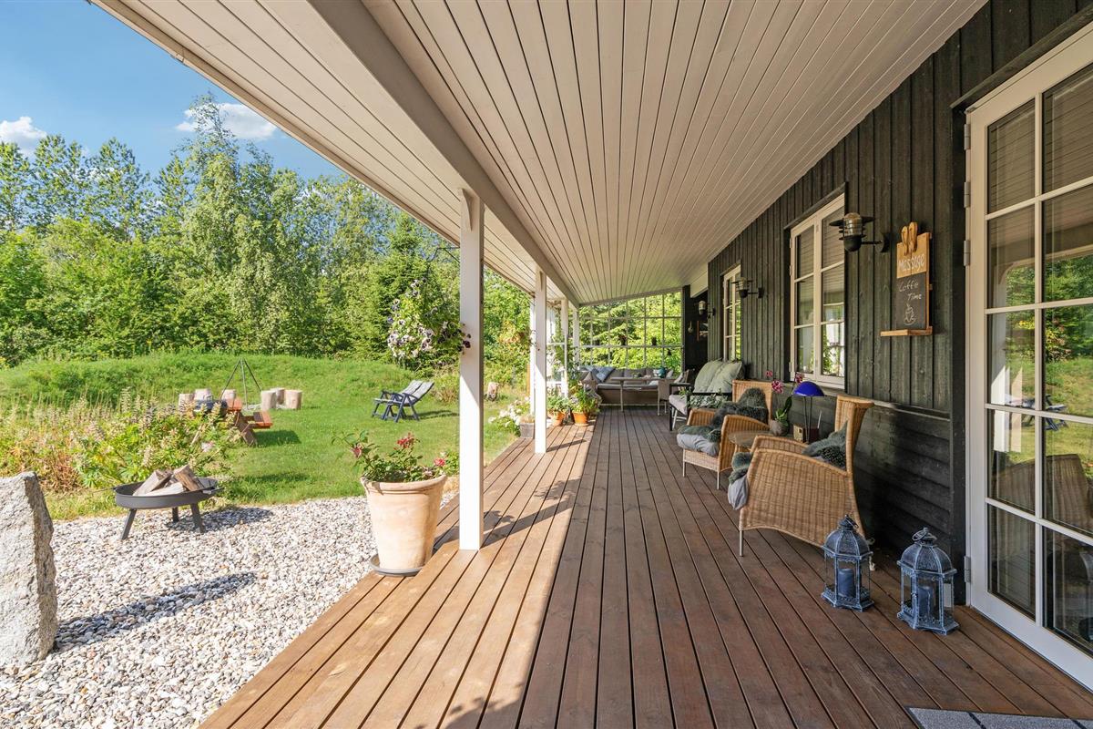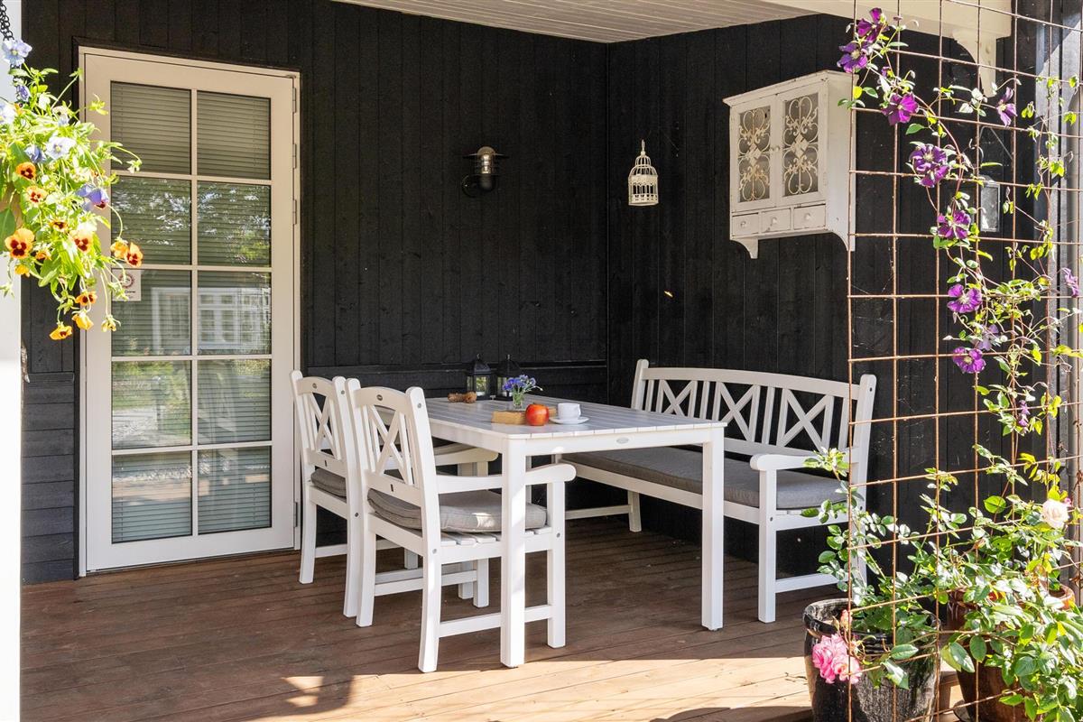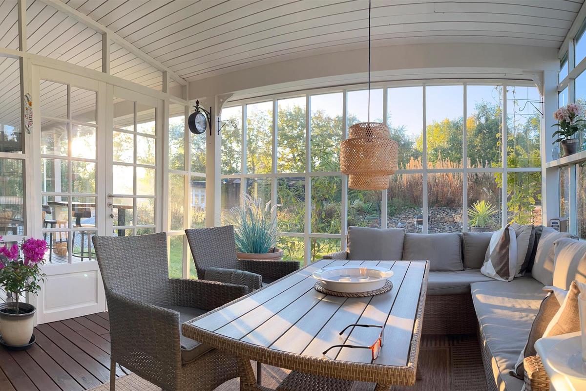 Een hoogtepunt van het huis is de grote overdekte veranda, waar u beschut kunt zitten met uitzicht op de tuin. Ontspan hier met een goed boek terwijl de kinderen op het terrein spelen.