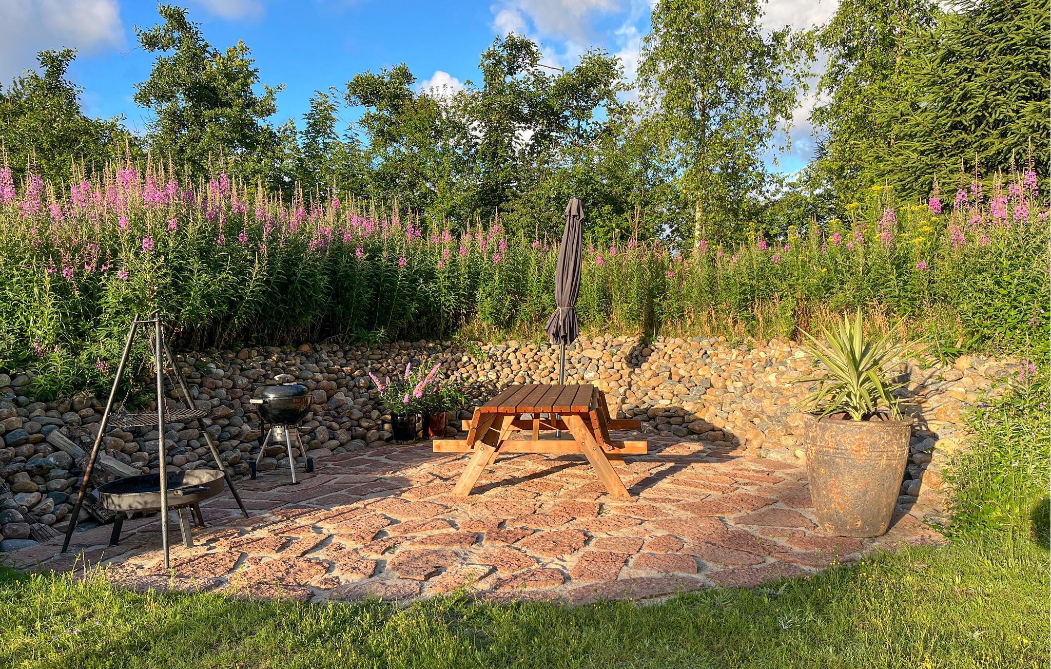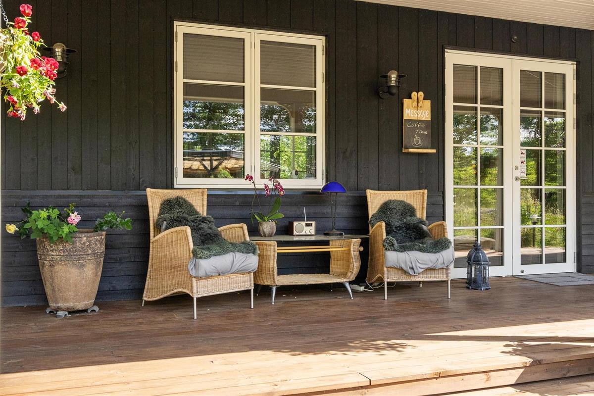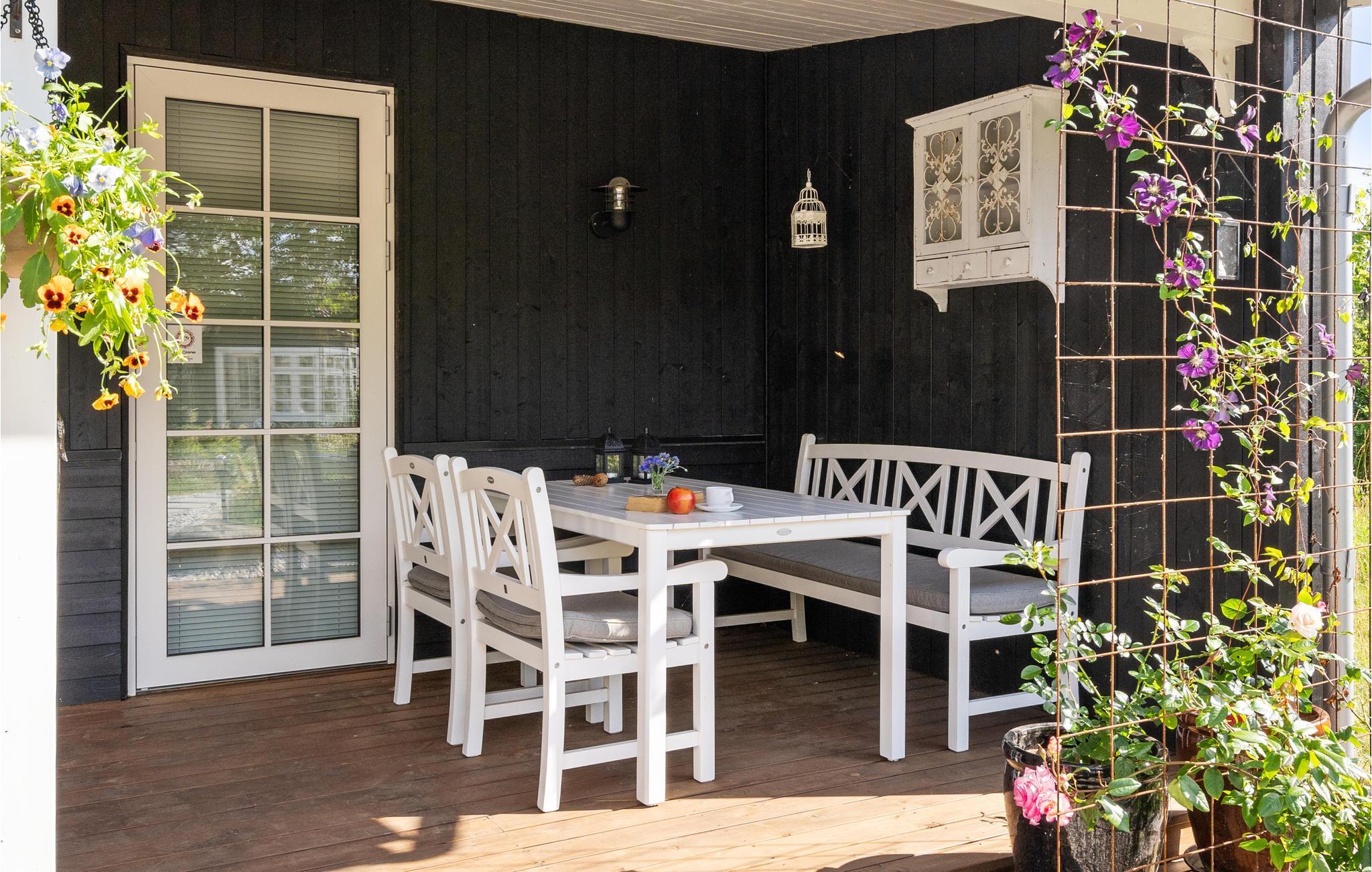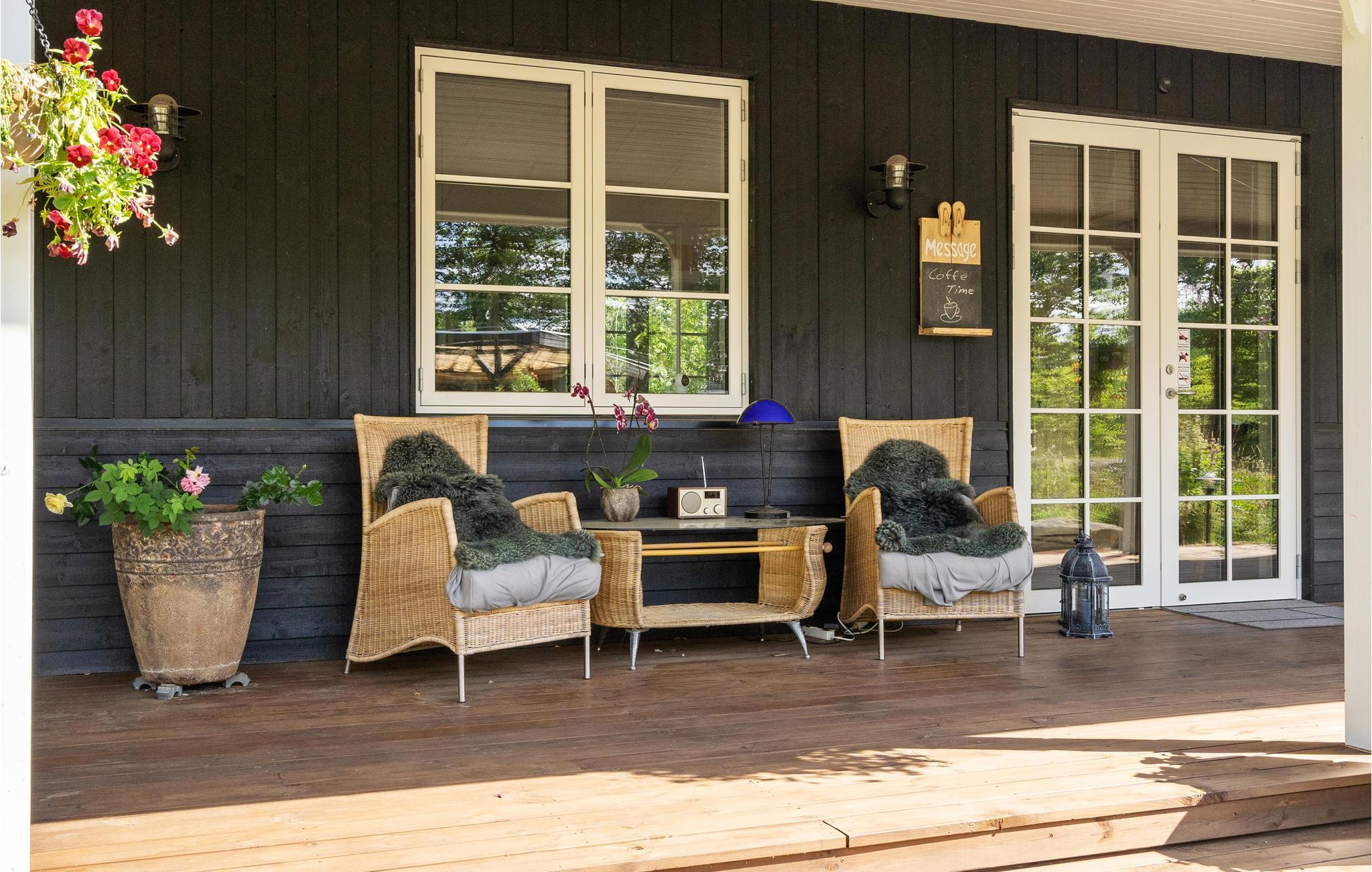 Een hoogtepunt van het huis is de grote overdekte veranda, waar u beschut kunt zitten met uitzicht op de tuin. Ontspan hier met een goed boek terwijl de kinderen op het terrein spelen.