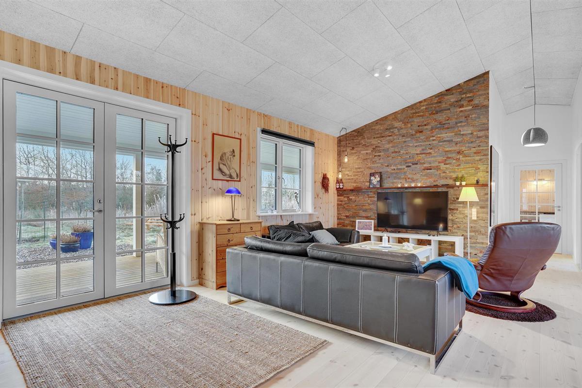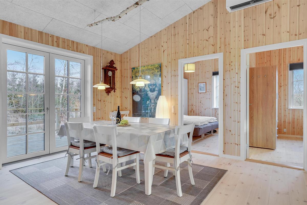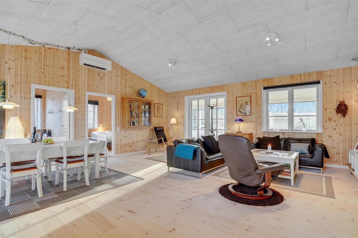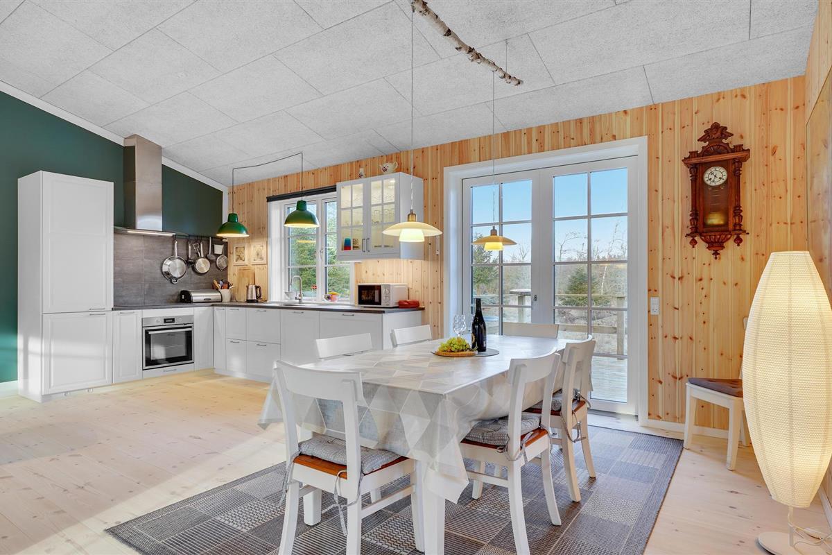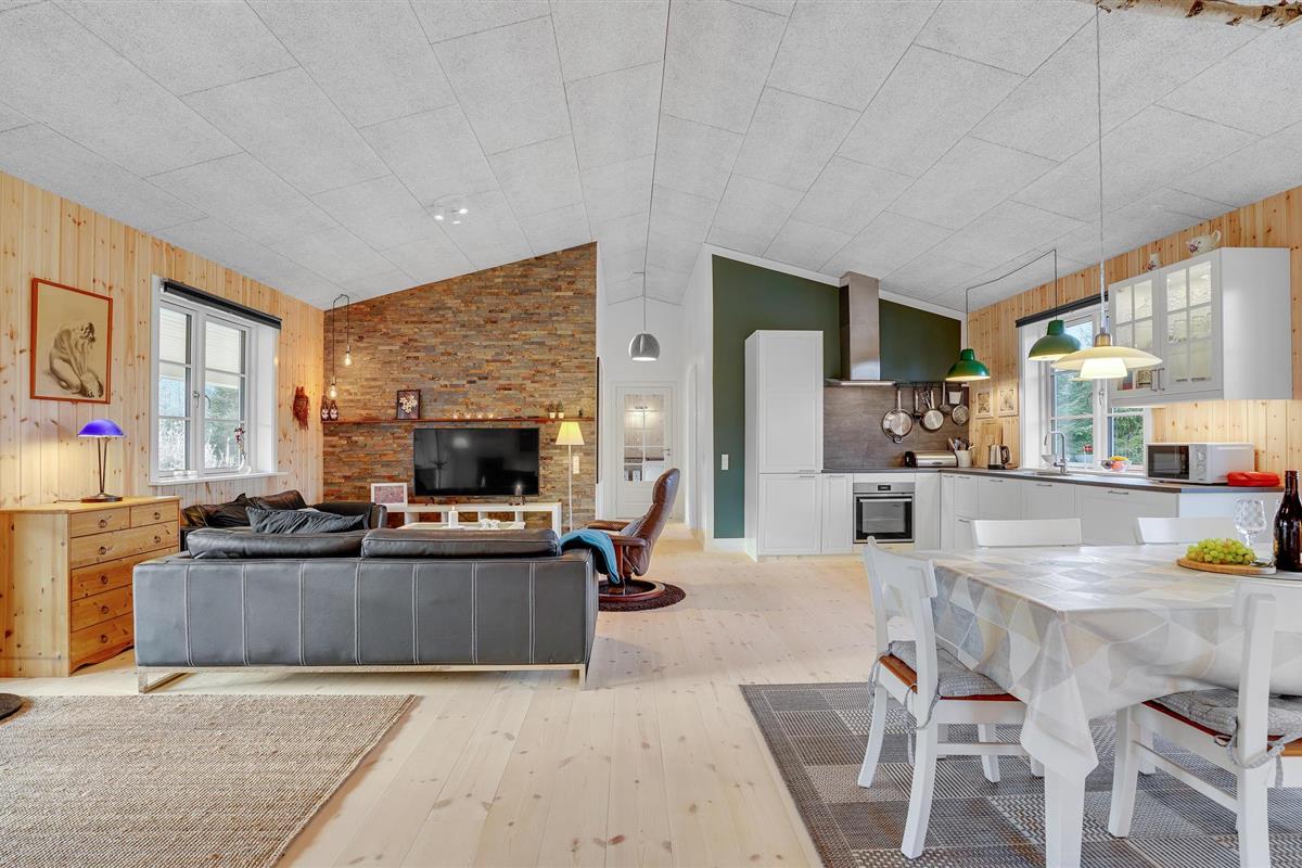 Dit liefdevol ingerichte en gedecoreerde vakantiehuis verwelkomt u op een groot natuurgrondstuk. Binnen in het huis vindt u een echt gezellige sfeer met veel mooie details. Het hart van het huis is het woon- en eetgedeelte met open keuken. Hier kunt u 's avonds ontspannen op de bank en een film kijken of aan de eettafel samenkomen voor de maaltijden van de dag.