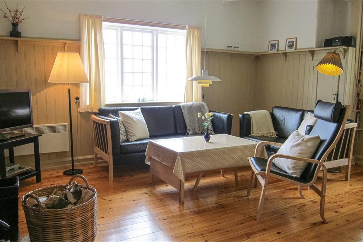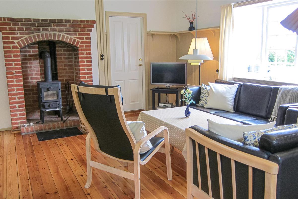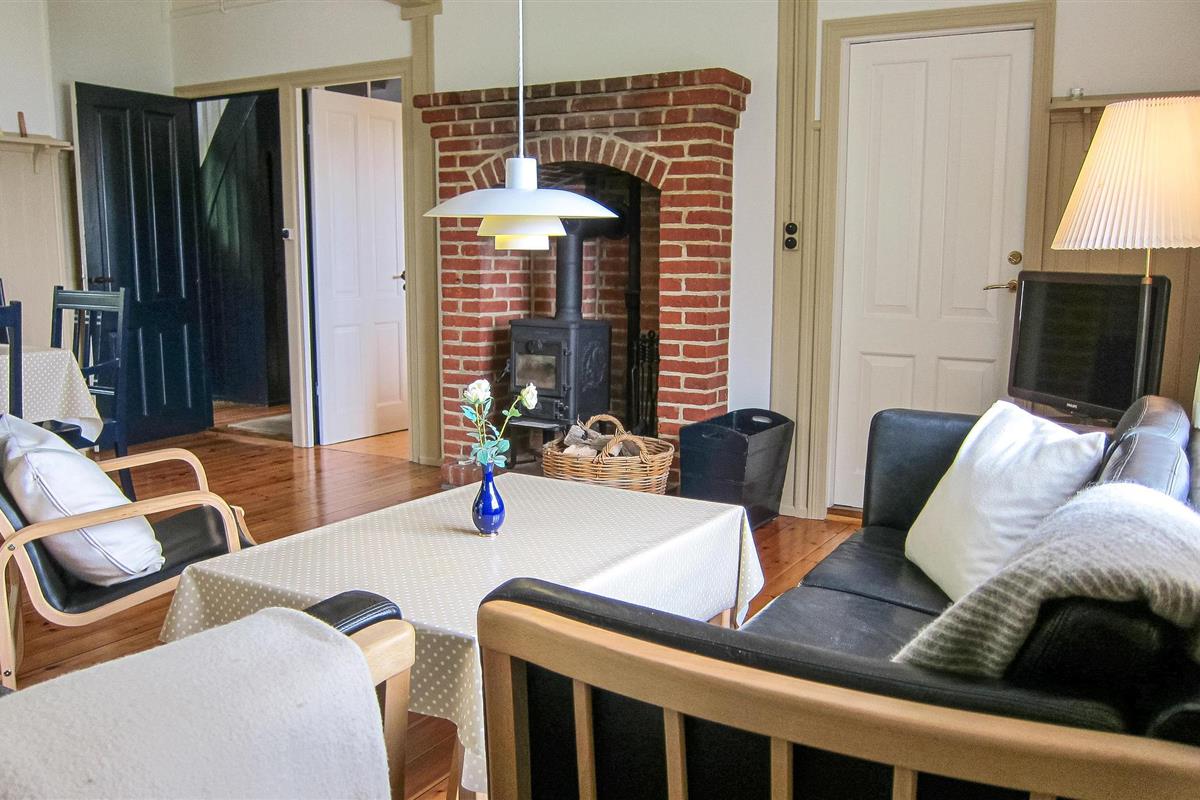 Freuen Sie sich auf eine einladende und bestens ausgestattete Küche, in der Sie Ihre Lieblingsgerichte problemlos zusammenstellen können. Das Wohnzimmer ist besonders gemütlich, mit einem Holzofen und Brennholz für regnerischen Tage. Während das Feuer im Ofen prasselt, genießen Sie durch die Fenster einen beruhigenden Meerblick. Für angenehmes Wohnklima ist gesorgt, denn das Haus ist gedämmt und verfügt über schallabsorbierende Fenster.