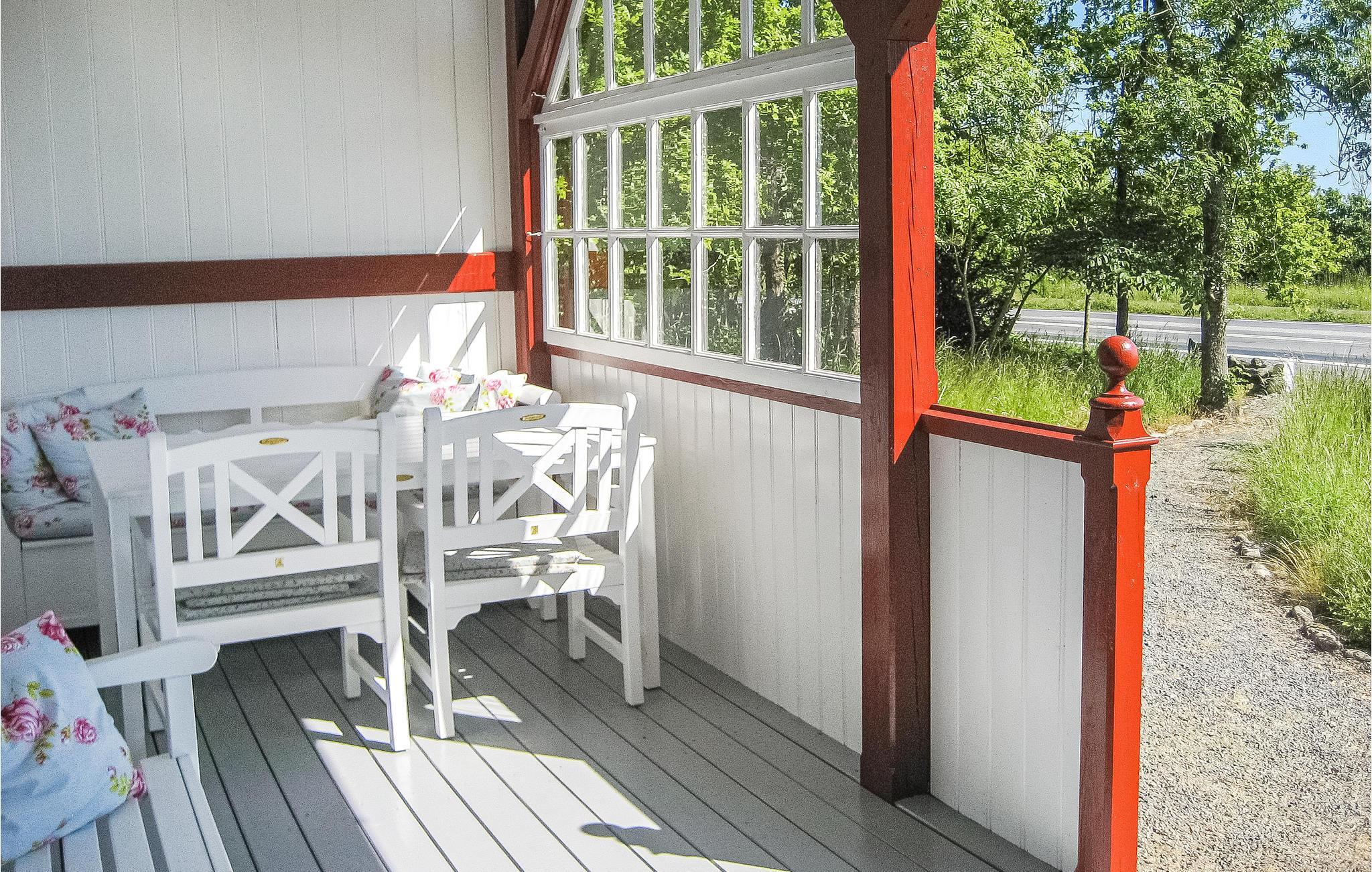 An sonnigen Tagen können Sie sich auf eine überdachte Veranda mit Gartenmöbeln und ebenso wunderbaren Aussicht begeben. Im Sommer werden Sie hier sicher viel Zeit verbringen.