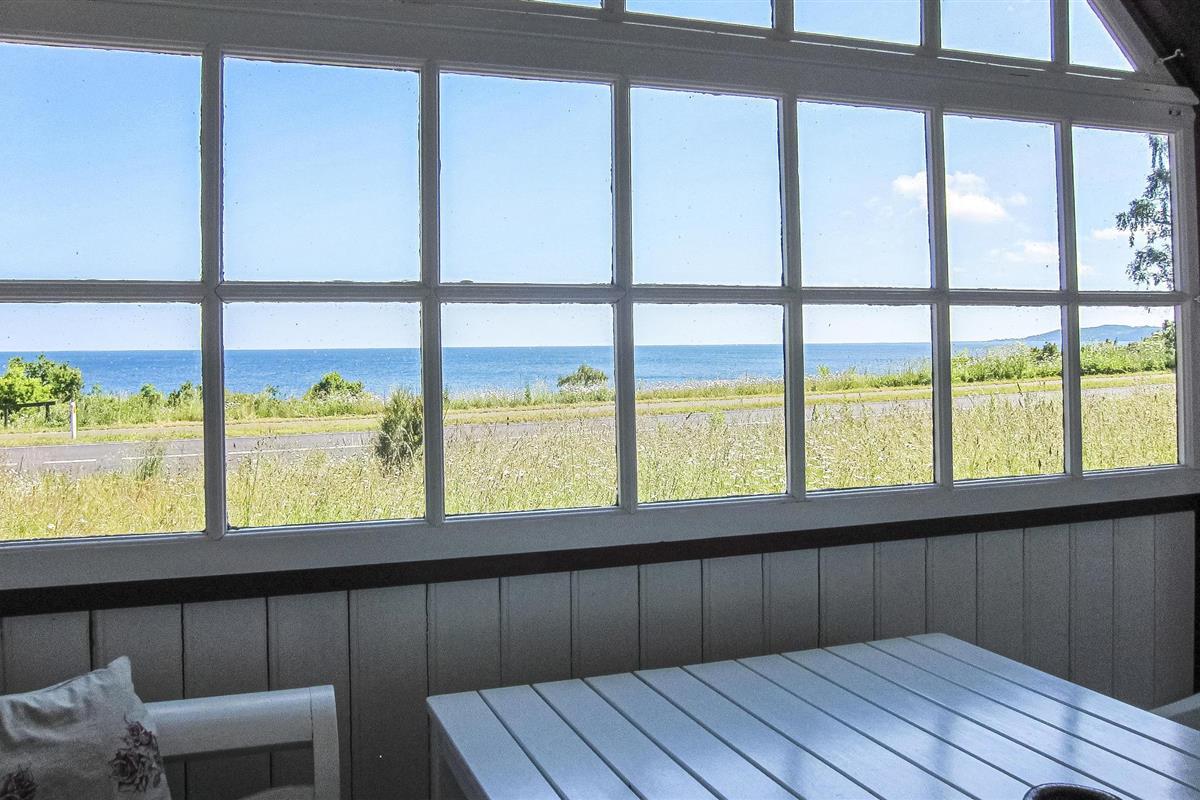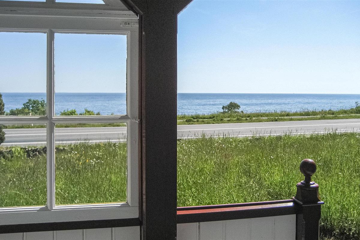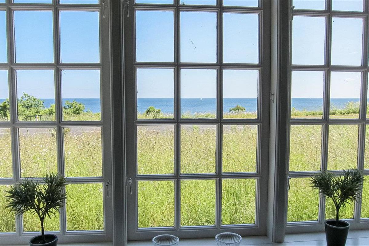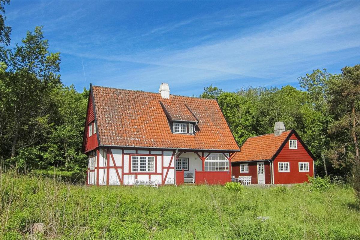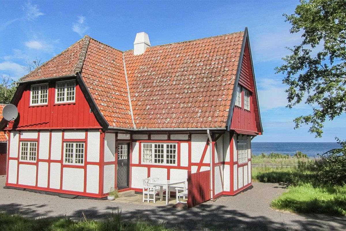 Schönes Fachwerkhaus aus dem Jahr 1917 mit Blick auf Felsen und Meer, die Insel Christiansø und das charmante Örtchen Gudhjem.