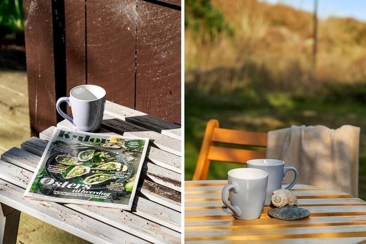 Die Terrasse ist ein wunderbarer Ort, um die Tage zu verbringen, egal ob du deinen Morgenkaffee in der Sonne genießen oder den Tag mit einem Glas Wein ausklingen lassen möchtest, während die Sonne über der Landschaft untergeht. Vom Grundstück aus kannst du einen Hauch des Meeres erblicken, der dich daran erinnert, dass das Meer nur eine kurze Fahrt entfernt ist. Hier draußen kannst du dich zurücklehnen und die Ruhe der Natur in vollen Zügen spüren – vielleicht entdeckst du sogar einige der vielen Vögel der Umgebung. Der abgeschlossene Garten bietet Schutz vor dem Wind, selbst an stürmischen Tagen, und gibt euch die Möglichkeit, völlig ungestört zu sein.