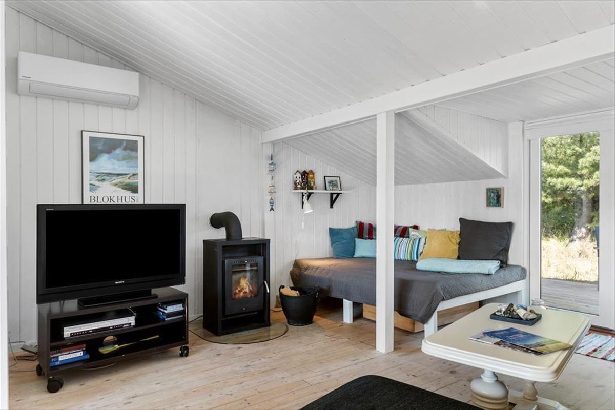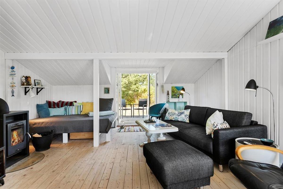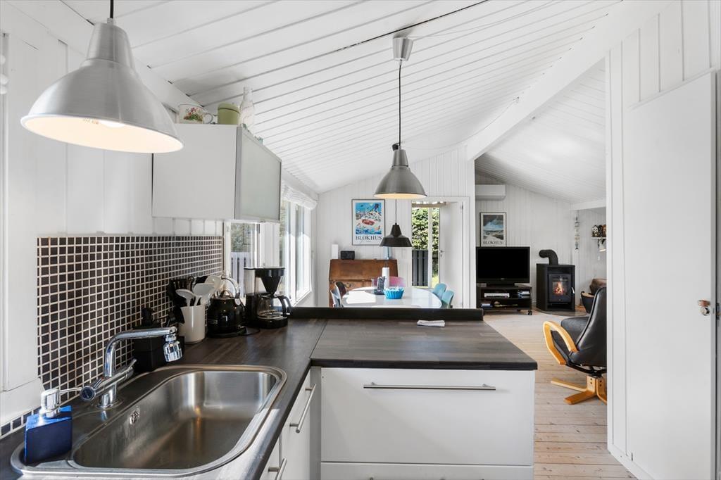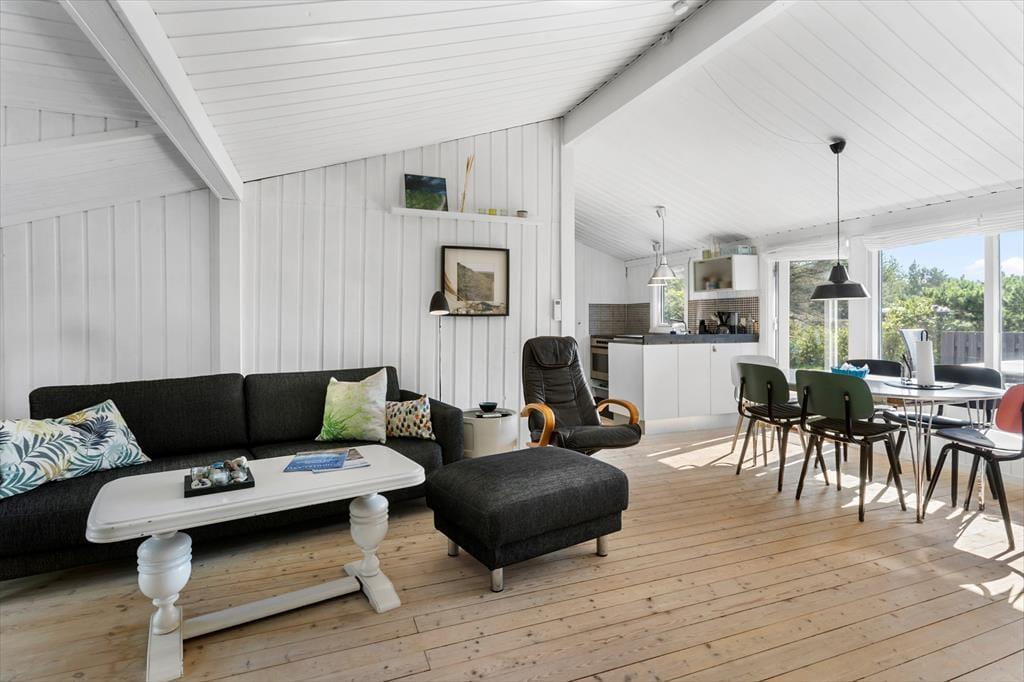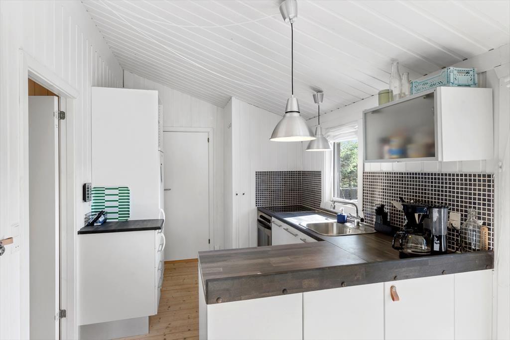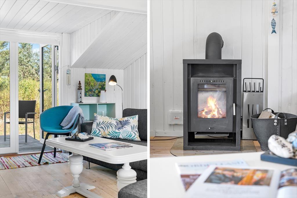 Das Ferienhaus ist hell und einladend mit einer gemütlichen Atmosphäre, die dich sofort willkommen heißt. Die lichtdurchfluteten Zimmer sorgen für eine angenehme Stimmung, während der Kamin im Wohnbereich an kühlen Tagen wohlige Wärme spendet. Wohnzimmer und Küche sind offen gestaltet, sodass du beim Kochen oder Entspannen in der Sofaecke stets in Gesellschaft deiner Liebsten bist. Große Fenster bieten einen herrlichen Blick auf das ruhige Naturgrundstück, das das Haus umgibt.