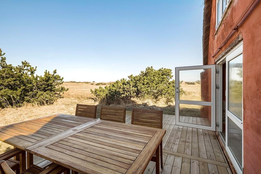 Die wunderschöne Lage des Hauses macht, dass der Außenbereich auch ein großer Teil des Urlaubserlebnisses ist. Die große Terrasse ist ideal, um lange Sommertage mit einem Glas Wein in der Hand zu genießen, während du die ungestörte Ruhe und den offenen Blick genießt. Egal, ob du dich sonnen möchtest, mit der Familie grillen oder einfach im Schatten entspannen möchtest, die Terrasse bietet den perfekten Rahmen. Bist du Hundebesitzer, werden sowohl dein Hund als auch du die offenen Außenflächen genießen, die Platz für Spiel und Erholung bieten. Die Lage ist auch perfekt für Naturfreunde, da sowohl Wald als auch Strand in der Nähe liegen und du schnell Ruhe am Westmeer finden kannst.