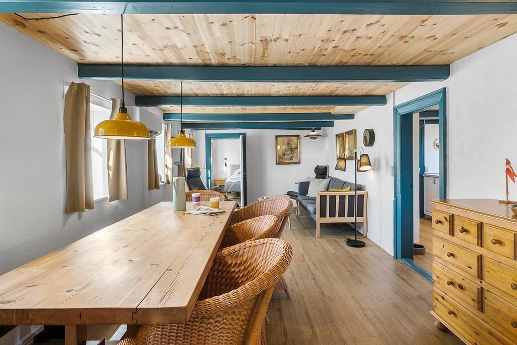 Dieses wunderschöne Ferienhaus an der Rødhus Klitvej 80 (Strandgaarden) wurde 2024 geschmackvoll renoviert und ist die ideale Basis für einen entspannenden Urlaub in einer schönen, ruhigen Umgebung. Das einzigartige Haus hat eine lange Geschichte, die bis ins 17. Jahrhundert zurückreicht, und bietet Komfort und charmante Details, die es zu einem ganz besonderen Ort machen, um Zeit mit Familie und Freunden zu verbringen. Mit Platz für 8 Personen und der Möglichkeit, einen Hund mitzubringen, ist dieses Haus perfekt für einen Urlaub, in dem sowohl Menschen als auch Tiere sich wie zu Hause fühlen können. Die ungestörte Lage ermöglicht es euch, euch zu entspannen und die Ruhe der Natur zu genießen, während ihr gleichzeitig einen einfachen Zugang nach Blokhus und zum Westmeer habt.