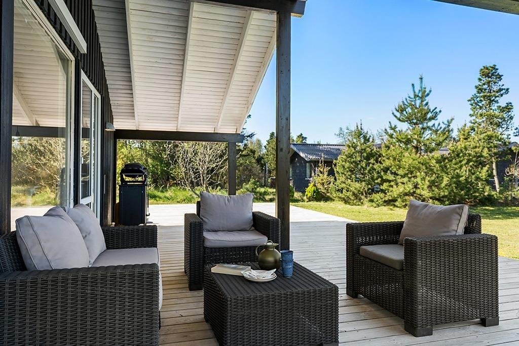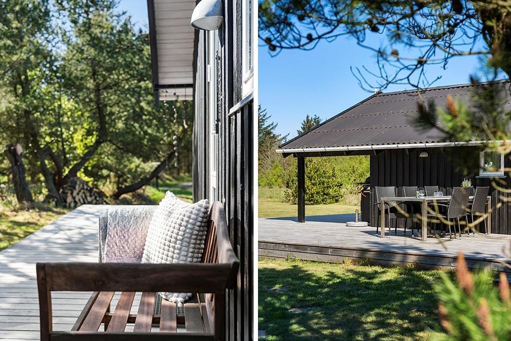 Vom Wohnbereich habt ihr direkten Zugang zu einer herrlichen Terrasse mit Gartenmöbeln, von der aus ihr die schöne Natur genießen könnt. Die Terrasse ist teilweise überdacht, sodass ihr sowohl Sonne als auch Schatten finden könnt. Genießt euren Morgenkaffee in der frischen Luft oder veranstaltet am Abend ein gemütliches Grillessen unter freiem Himmel. Das große Naturgrundstück sorgt für eine ungestörte Atmosphäre, während ihr die salzige Meeresluft einatmet und das Rauschen des Windes in den Dünen hört.