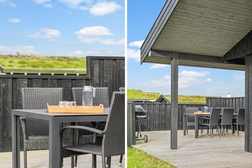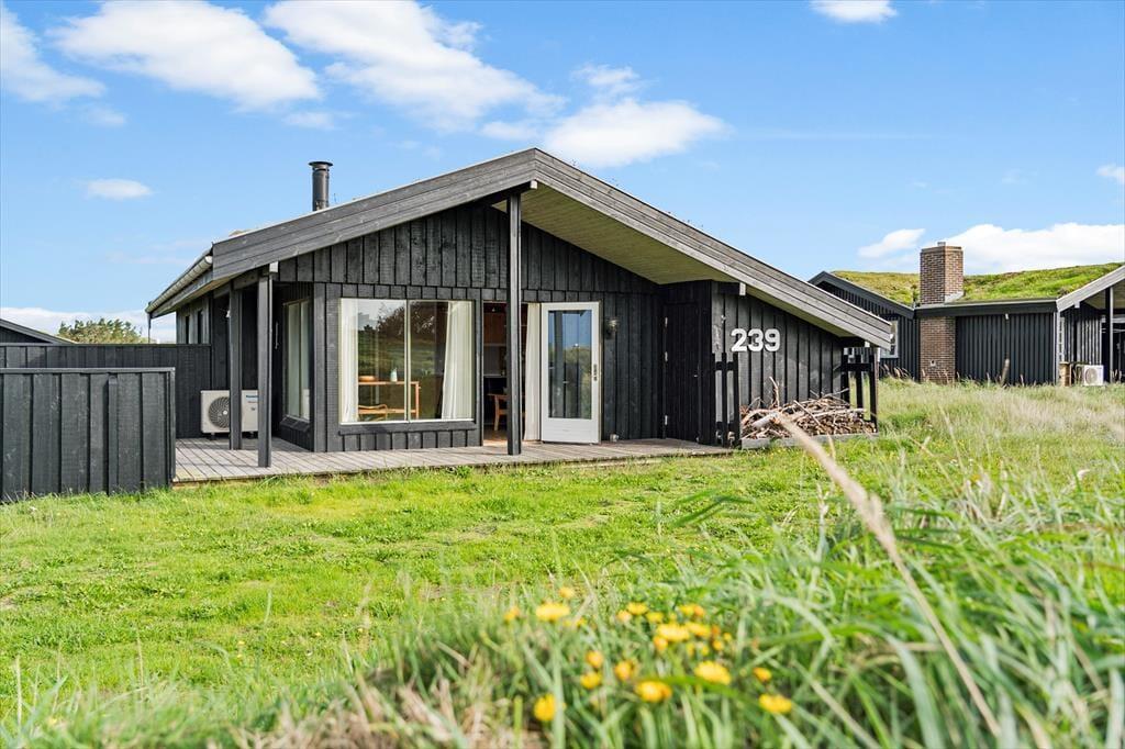 Von der kleinen Sackgasse, in der sich dieses Urlaubsdomizil befindet, führt Sie ein kleiner Pfad durch die Dünenlandschaft bis an den Strand. Da Ihr Spaziergang an den Strand nur wenige Minuten dauert, werden Sie sicher gleich mehrmals pro Tag die Nordsee besuchen, an der Sie nach Herzenslust baden, lange Spaziergänge unternehmen, im warmen Sand spielen und wunderschöne Sonnenuntergänge bewundern können. Einfach erreicht ist zudem das Waldgebiet Blokhus Klitplantage. Aktivurlauber treffen unter anderem auf gute Möglichkeiten zum Golfen und zum Reiten. Auf Ihren mitgebrachten Fahrrädern radeln Sie durch das üppig grüne Waldgebiet bis in den populären Badeort Blokhus, in dem sich mehrere schöne Cafés und Lokalitäten sowie interessante Geschäfte auf Ihren Besuch freuen.