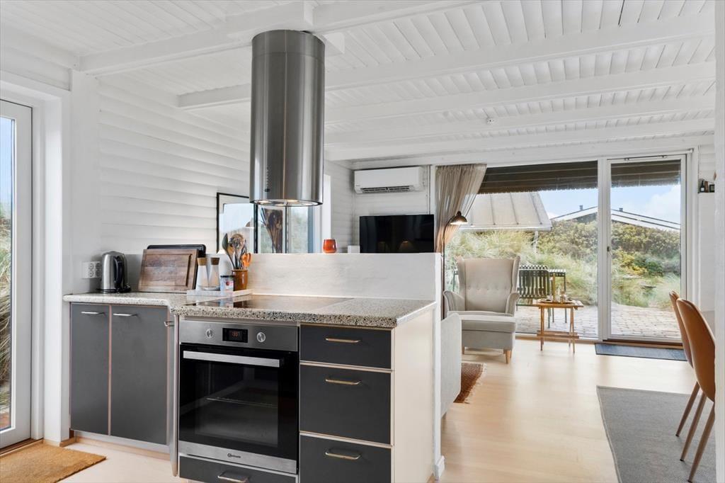 Hinter der ansprechenden Holzfassade des im Jahr 2021 zuletzt renovierten Hauses erwarten Sie helle und einladende Räumlichkeiten. Das schöne Interieur trägt maßgeblich zum Komfort und zur gemütlichen Atmosphäre bei. Im Eingangsbereich stehen eine Waschmaschine und ein Wäschetrockner bereit. Die offene Küche bietet gute Arbeitsbedingungen für mehrere Personen und verfügt unter anderem über einen Geschirrspüler. Im Wohnraum genießen Sie gemütliche Stunden in der Polstersitzgruppe. Der Essplatz besticht mit einem direkten Blick auf die Dünen. Für behagliche Temperaturen sorgen ein Kaminofen und eine Wärmepumpe. Von den drei Schlafräumen können Sie direkt hinaus in die Dünenlandschaft treten. Im Nebengebäude sind ein zusätzlicher Schlafraum und ein Badezimmer mit Dusche untergebracht, sodass Sie ohne weiteres die Großeltern oder gute Freunde mit in den Urlaub nehmen können.