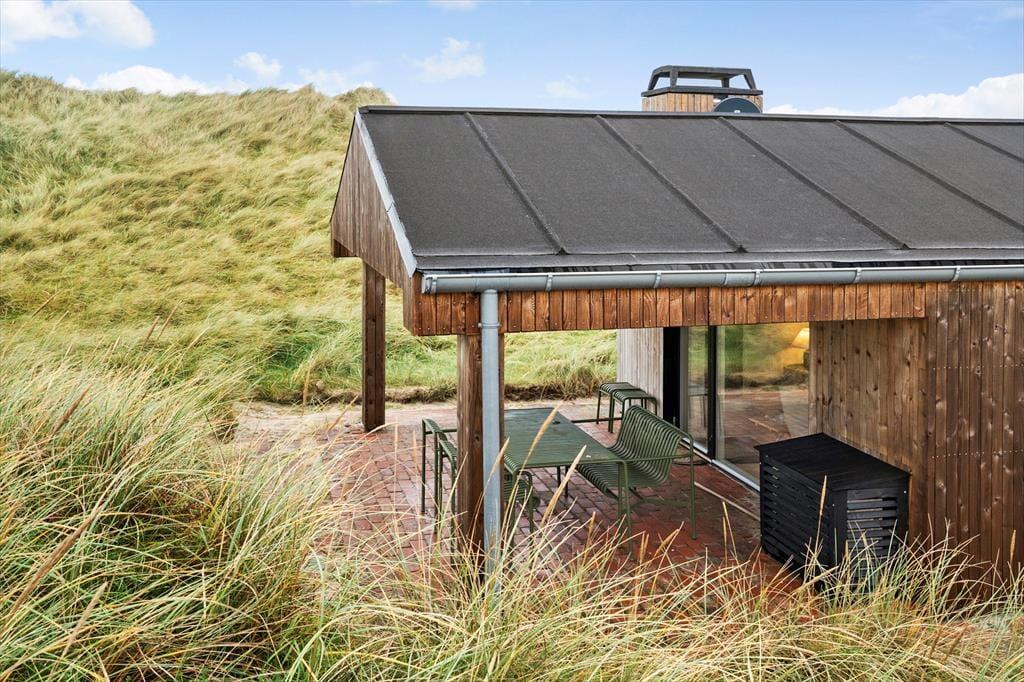Auf Ihrem riesigen Dünengrundstück genießen Sie Ruhe und atemberaubende Natur. In Verlängerung des Wohnraums befindet sich ein überdachtes Terrassenareal. An die südöstliche Hausseite schmiegt sich eine sonnige, durch die Dünen gut vor Wind geschützte Terrasse. Alternative Aufenthaltsplätze stehen am Nebengebäude zur Verfügung. Ein Pfad führt Sie zu einer Aussichtsbank auf der Sie sich mit Blick auf Meer und Strand entspannen. Eine Außendusche und eine Lademöglichkeit für E-Autos sind vorhanden.