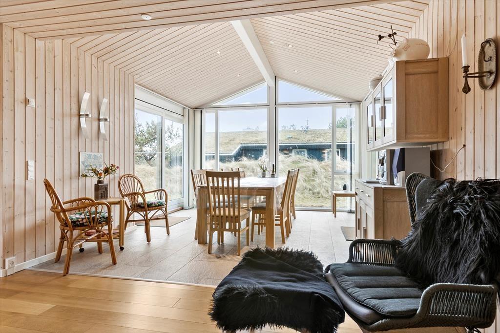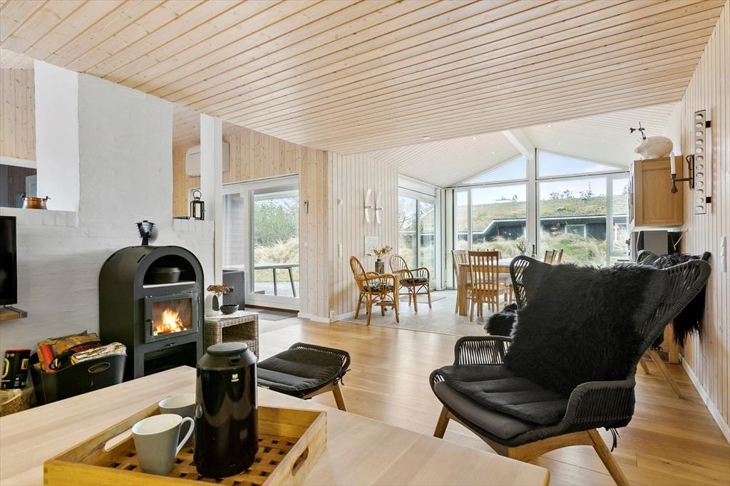 Dieses renovierte Ferienhaus in der Hunetorp Klitvej 109 in Rødhus ist ein wahres Schmuckstück mit Liebe zum Detail. Es verbindet modernes Design mit gemütlicher Ferienhausatmosphäre und ist der perfekte Ort für einen entspannten Urlaub. Das Haus bietet unter anderem einen Kaminofen im Wohnzimmer, ein großes Whirlpool im Badezimmer und viel Licht, das durch die großen Fenster strömt. Die Lage ist ebenfalls hervorragend – nur einen kurzen Spaziergang vom Vesterhavet entfernt und umgeben von der ruhigen Natur von Rødhus. Mit Platz für 10 Personen ist dieses Ferienhaus ideal für große Familien oder Freundesgruppen, die gemeinsam entspannen möchten.