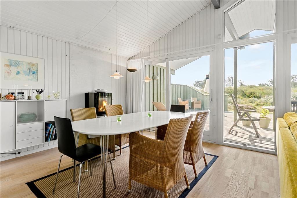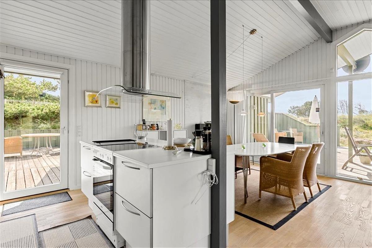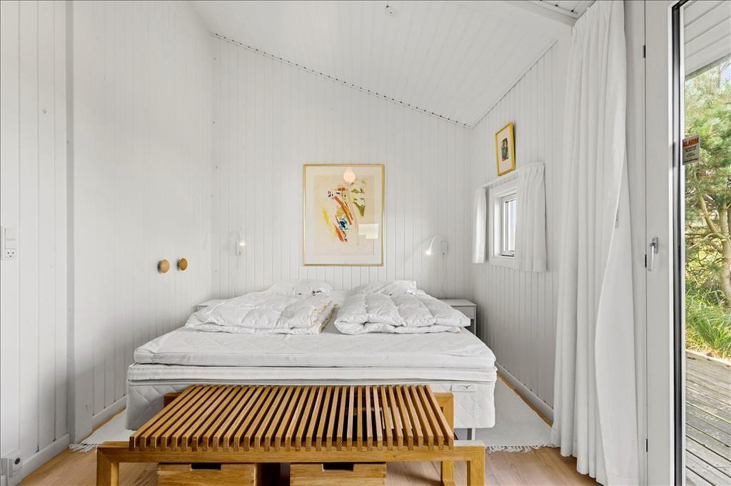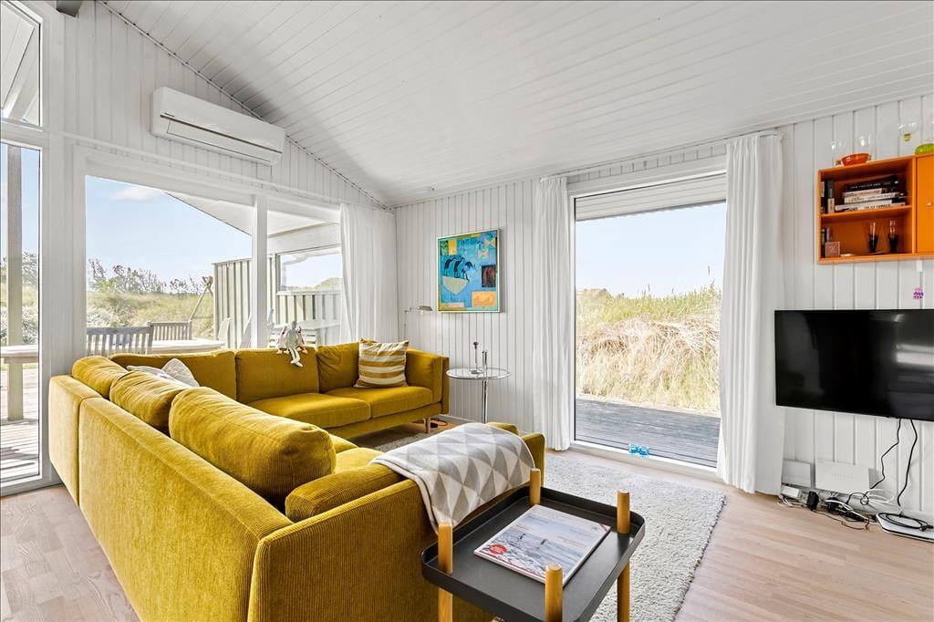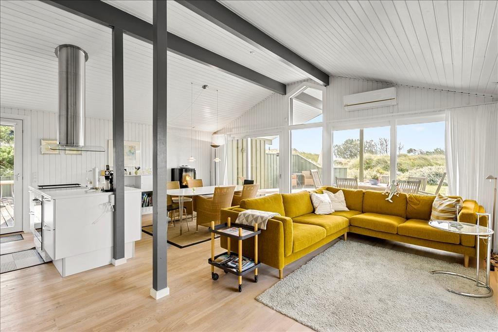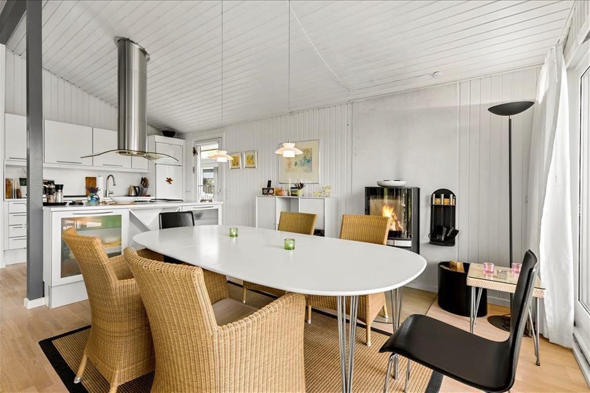 Das liebevoll und geschmackvoll eingerichtete Urlaubsdomizil empfängt Sie mit einer modernen Möblierung. Sowohl die Decken als auch die Wände sind in weißen Farbtönen gehalten. Die Bauweise des Hauses mit hohen Decken bedingt ein wunderbar luftiges und angenehmes Raumklima. Das gesamte Objekt verfügt über Holzfußböden. Lediglich die beiden Badezimmer sind mit Fliesenböden und einer Fußbodenheizung ausgestattet. Zwei ausgesprochen gute Schlafräume versprechen zudem einen erholsamen und gelungenen Aufenthalt für vier Personen. Zahlreiche moderne Ausstattungsmerkmale prägen dieses Haus und ergänzen in idealer Weise das gemütliche Wohnambiente. So sorgt beispielsweise der schöne, große Kamin für heimelige Wärme und Gemütlichkeit im Wohnraum, während die moderne Wärmepumpe das ganze Jahr hindurch für ein angenehmes Wohnklima sorgt. Zusammenfassend bildet dieses Mietobjekt einen wirklich schönen Rahmen für Ihren nächsten Urlaub in Nordjütland.
