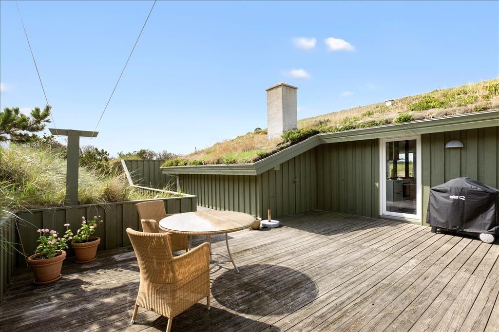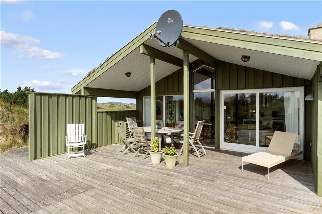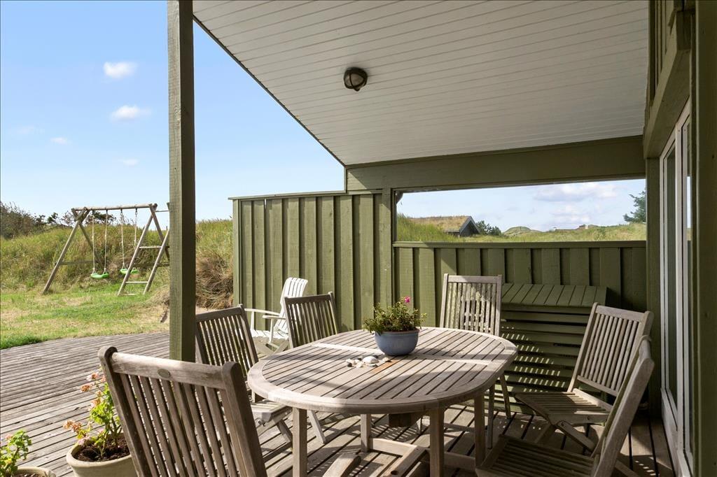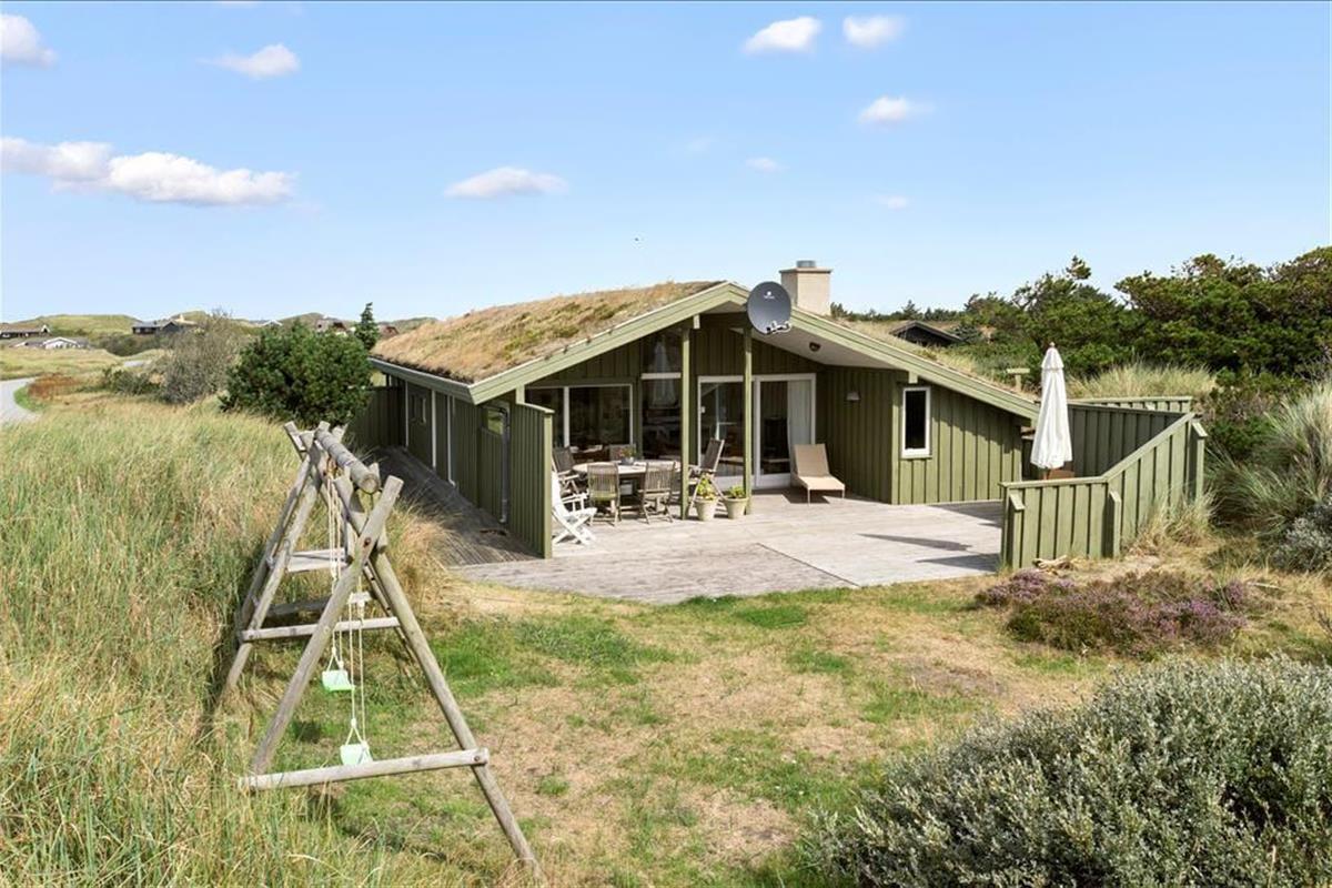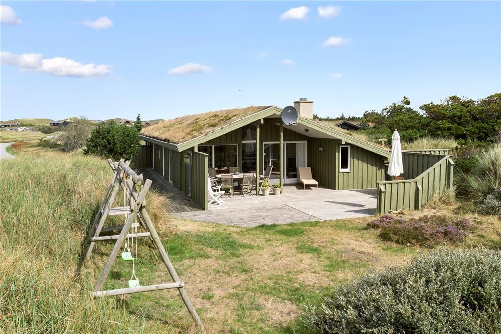 Dieses Urlaubsdomizil in traditioneller Bauart fügt sich auf schönste Weise in die herrliche Dünenlandschaft von Rødhus ein. Ihnen stehen mehrere schöne, offene Terrassenbereiche in Richtung Süden und Westen zur Verfügung. Ein kleiner Bereich der Terrasse ist zudem überdacht. Dank der guten Gartenmöbel werden Sie sicherlich sehr viel Zeit unter freiem Himmel verbringen und sich wunderbar erholen. Während Sie sich in aller Ruhe auf den Terrassen entspannen, können Ihre Kinder vergnügt in der Sandkiste spielen oder schaukeln.
