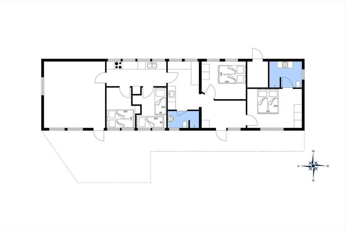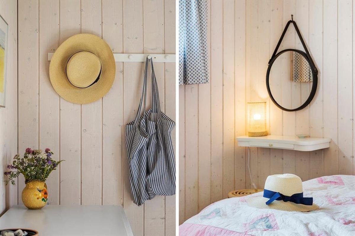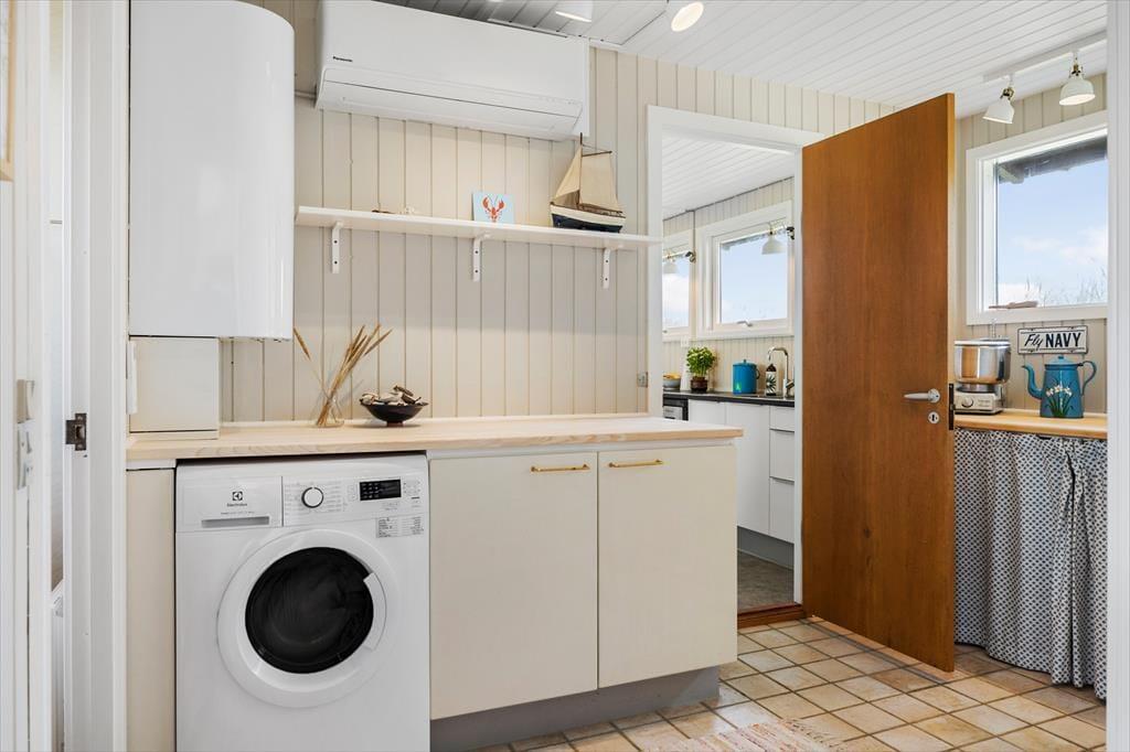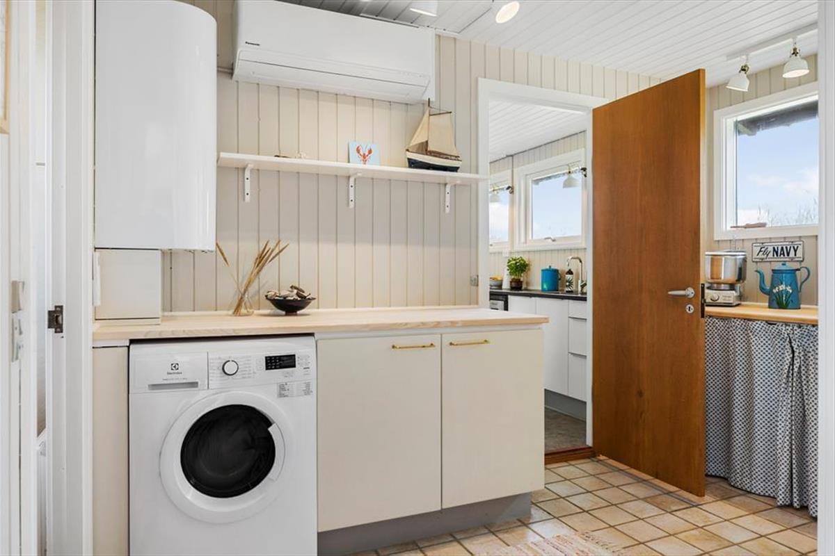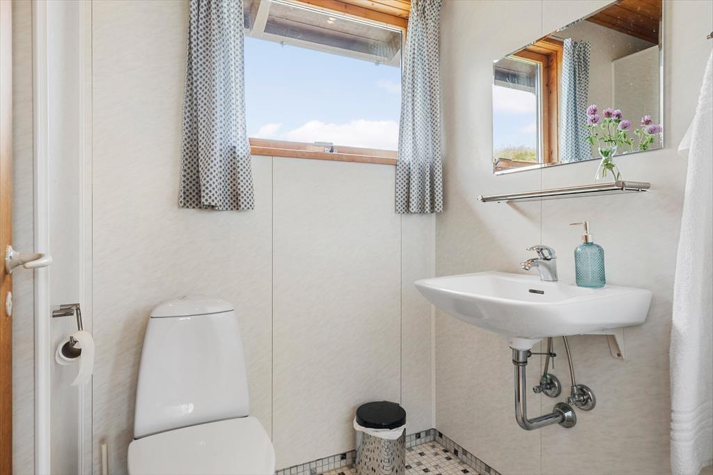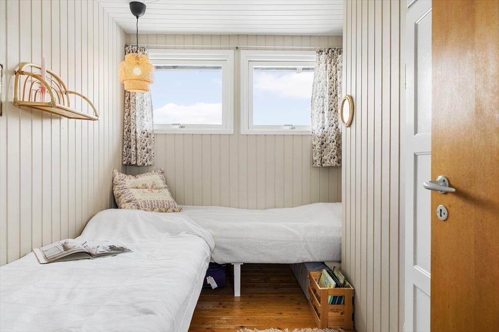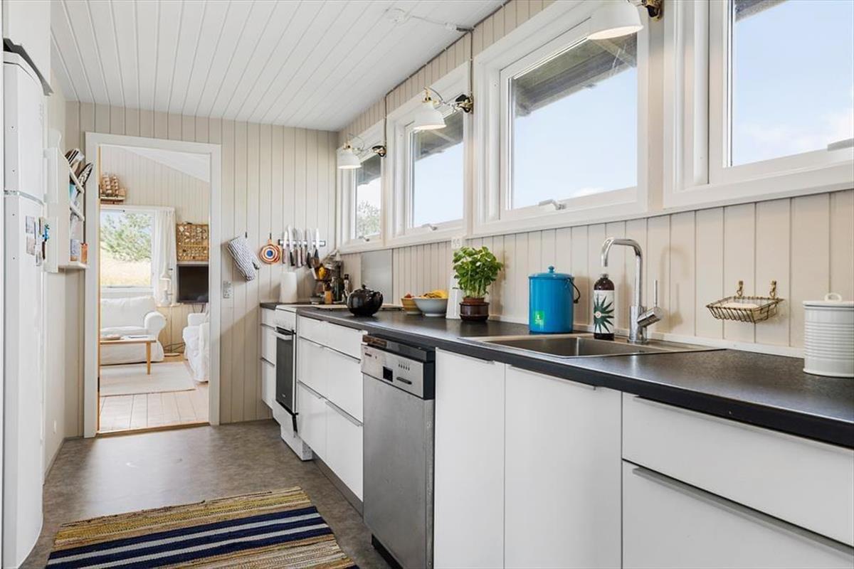 Rødhus begeistert mit einer atemberaubenden weitläufigen Landschaft. Vom Inneren dieses Ferienhauses blicken Sie über Heideflächen, Strandhafer und Dünengräser und genießen das wunderbare Gefühl, eins mit der Natur zu sein. Die klassische Einrichtung mit hohen Decken, Holzwänden und einer gemütlichen Möblierung harmoniert sehr schön mit der Naturidylle ringsum. Auf unnötigen Schnickschnack und Luxus wurde in diesem Haus bewusst verzichtet. Im Gegenzug verwöhnt Sie eine überaus gemütliche und erholsame Atmosphäre und Sie genießen angenehm viel Platz für das wertvolle Beisammensein im Familienkreis. Die Wohnfläche umfasst 100 m² und unterteilt sich in einen Wohnraum, eine Küche, einen Hauswirtschaftsbereich und zwei Badezimmer. Vier Schlafräume stehen ebenfalls zu Ihrer Verfügung. Drei der Schlafräume begrüßen Sie mit je einem Doppelbett. Im vierten Schlafraum stehen hingegen zwei Einzelbetten bereit.