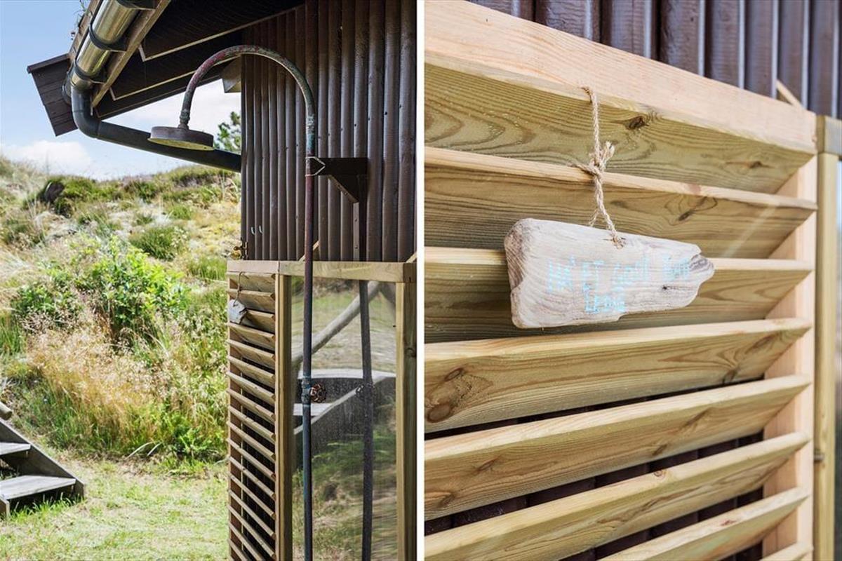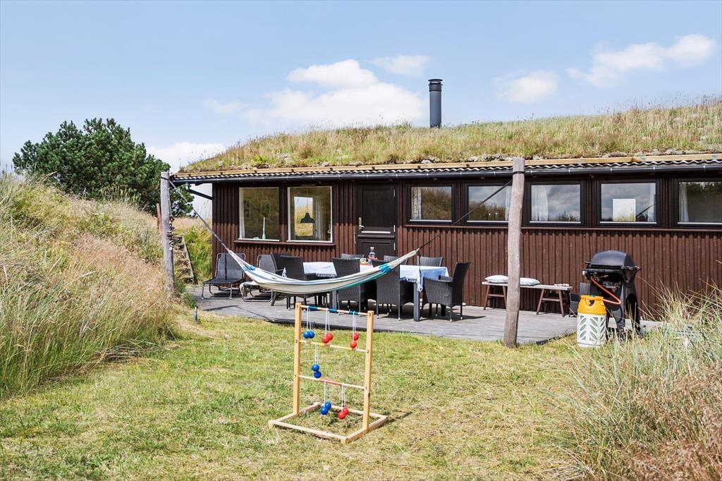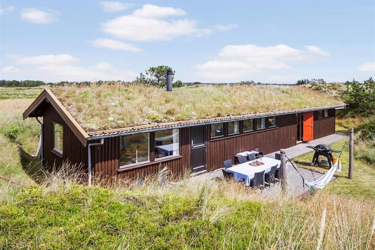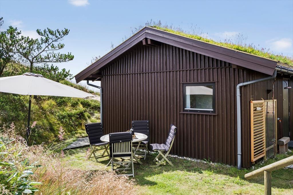 Beim Hjelmevej handelt es sich um eine kleine Sackgasse in der nur vereinzelte Ferienhäuser liegen. All diese Häuser fügen sich mit ihrem begrünten Naturdach und der dunklen Fassade sehr stimmungsvoll in das Landschaftsbild ein. Mit anderen Worten steht hier die Natur im Mittelpunkt, und Sie genießen das exklusive Gefühl inmitten friedvoller Umgebung nahe der Nordsee zu wohnen. Nur knapp ein Kilometer trennt Sie von der Nordsee und deren herrlichem Sandstrand. Obwohl Sie nur sieben Kilometer außerhalb des lebendigen, pulsierenden Badeortes Blokhus wohnen, geht es hier überaus friedvoll zu und Sie werden am Strand auf nur wenige Besucher treffen. Natürlich ist es auch schön, einen Urlaub so nah an einem der großen Badeorte zu verbringen. In Blokhus laden diverse schöne Geschäfte, gemütliche Cafés und gute Restaurants zum Bummeln und Verweilen ein. Binnen kurzer Zeit erreichen Sie auch die wunderschönen Gartenanlagen von Anne Justs Have, den schönen Skulpturenparken und das Museum für Papierkunst. Somit steht selbst kulturellen Erlebnissen in dieser attraktiven Gegend absolut nichts im Wege.
