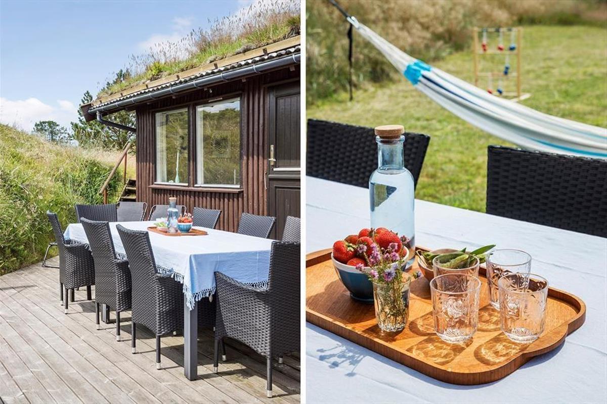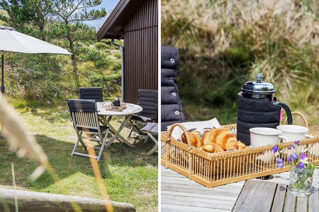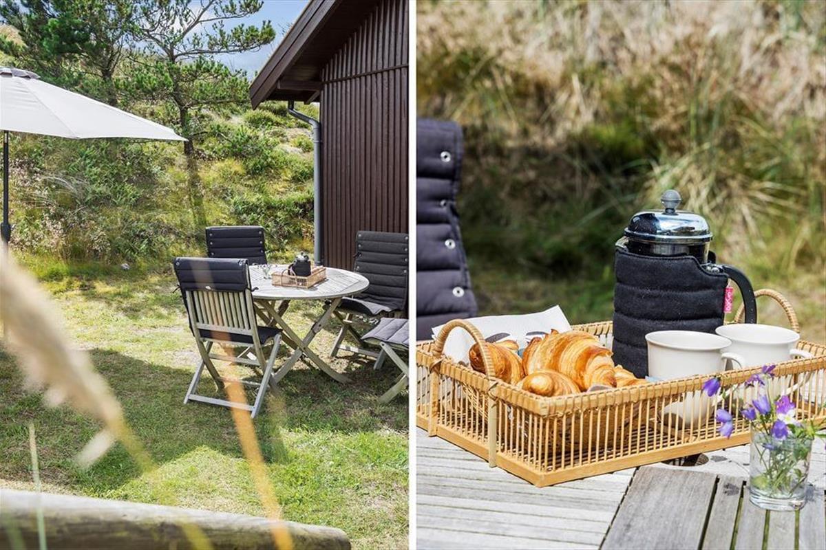 Bei Ihrem Ferienhausgrundstück handelt es sich um ein riesiges Naturgrundstück mit kleinen, seichten Dünen, die das Haus auf natürliche Weise abschirmen. Rund um das Haus genießen Sie entspannte Stunden auf den Gartenmöbeln - eventuell im Schatten des Sonnenschirms oder mit einem guten Essen vom Grill. Alternativ lockt auch stets die Aussichtsbank, auf der Sie weithin über die prachtvolle Landschaft blicken und traumhaft schöne Sonnenuntergänge bewundern.