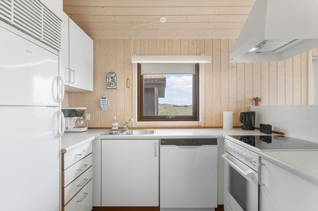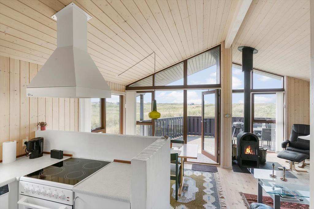 Dieses ansprechende Ferienhaus glänzt mit seiner fantastischen Lage in Rødhus: Gen Osten erstreckt sich ein Naturschutzareal. In entgegengesetzter Richtung erreichen Sie nach nur 100 Metern den Strand und die Nordsee. Die wunderbare Lage eröffnet Ihnen reiche Möglichkeiten, sich aktiv an der frischen Luft zu bewegen - vorausgesetzt, Sie möchten sich nicht nur in aller Ruhe auf den hauseigenen Terrassen erholen und entspannen.