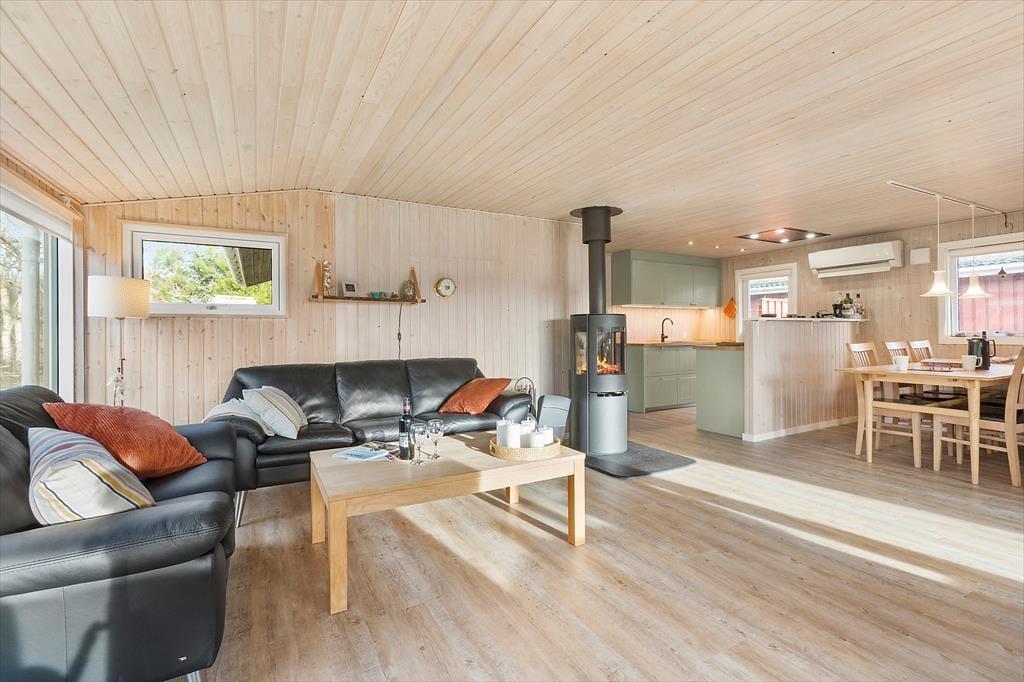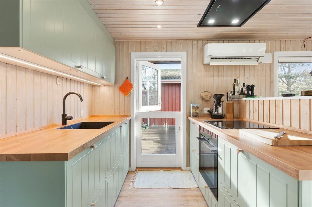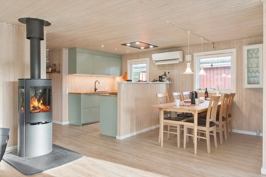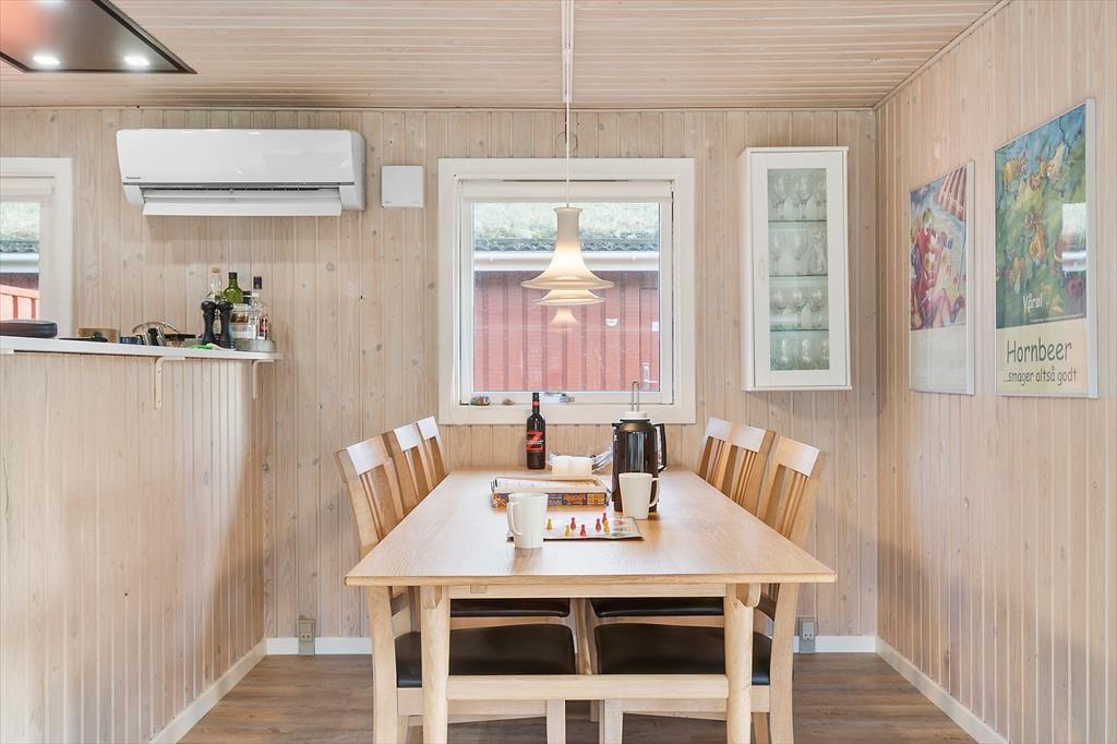 Bei diesem Urlaubsdomizil erwartet Sie unglaublich viel echt dänische Ferienhausgemütlichkeit. Dies erahnen Sie bereits, wenn Sie das bezaubernde Äußere mit seiner roten Holzfassade und dem begrünten Dach erstmals in Augenschein nehmen. Im Hausinneren locken helle und einladende Räumlichkeiten, in denen Sie sich schnell heimisch fühlen werden und im Nu spüren, wie der Stress und die Hektik des Alltags von ihren Schultern abfallen. Die Einrichtung ist schlicht und funktionell: Die drei Schlafräume bieten Platz für bis zu sieben übernachtende Gäste, und das Badezimmer, der Hauswirtschaftsbereich und die Küche sind so mit funktionellen Details ausgestattet, dass Sie problemlos duschen, Wäsche waschen und kochen können. Die Küche ist offen mit dem Wohnraum verbunden, sodass Sie selbst bei der Zubereitung der köstlichen Urlaubsmahlzeiten noch voll im Familiengeschehen im Wohnraum integriert bleiben.