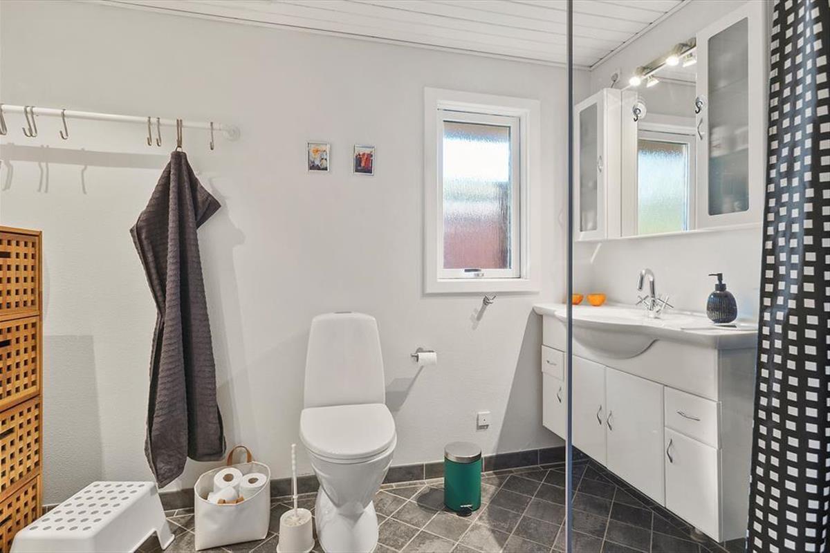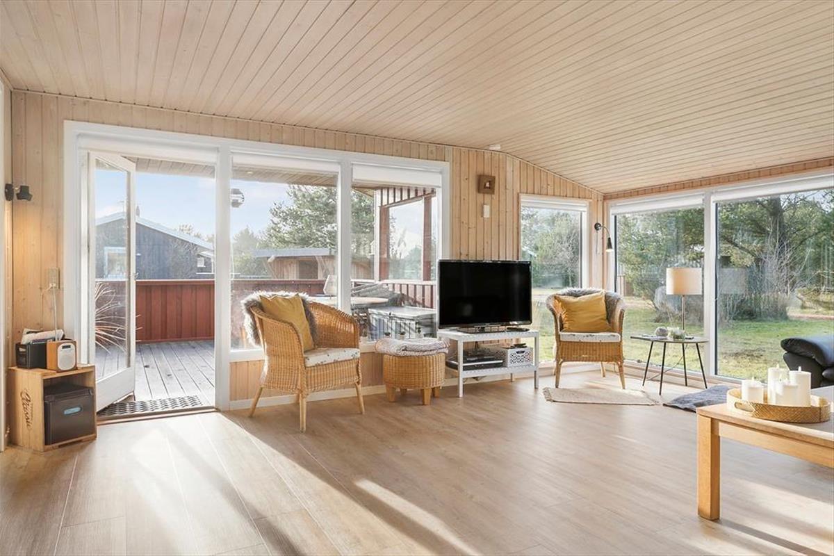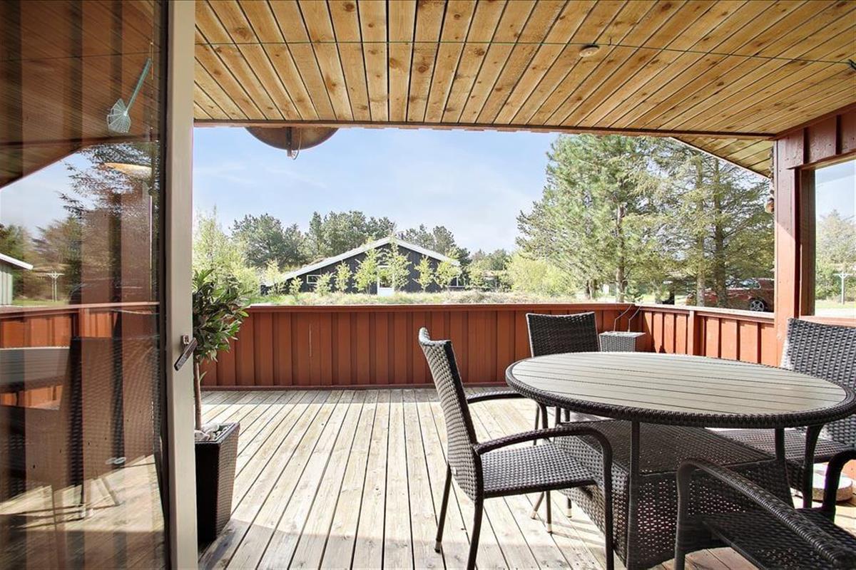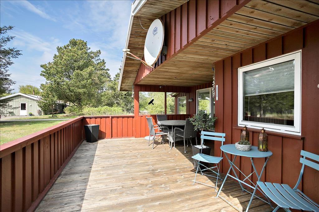 Das Ferienhaus befindet sich nahezu am Ende eines kleinen Weges, sodass es an dieser Adresse angenehm friedvoll und ruhig zugeht. Daher dürfen Sie sich auf traumhaft erholsame Momente auf der Terrasse und auf ausgelassene Spiele auf der Grasfläche freuen. Die große Terrasse ist durch eine Terrassenumrandung abgeschirmt und verfügt zudem über einen überdachten Bereich, auf dem Sie es sich während der langen, hellen Sommerabende mit einem guten Glas Wein so richtig gemütlich machen können.