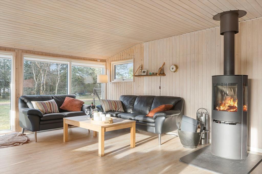 Dieses gepflegte Ferienhaus in Rødhus verfügt im gemütlichen Wohnraum über einen behaglich knisternden Kaminofen, sodass Sie es sich an kühlen Tagen im Haus so richtig kuschelig machen können. Bei sonnigem, sommerlichem Wetter können Sie Ihr entspanntes Urlaubsleben hingegen ohne Weiteres hinaus auf die Terrassen verlegen, die sich auf dem grünen Grundstück um das Haus herum schmiegen.