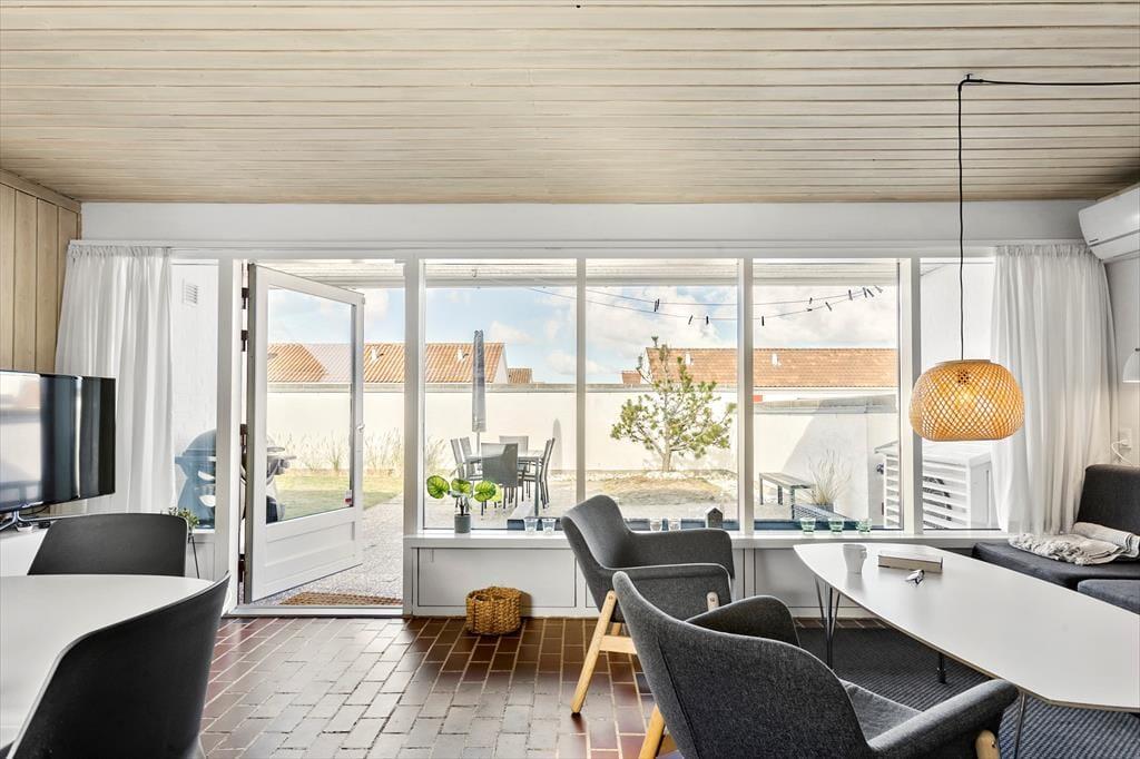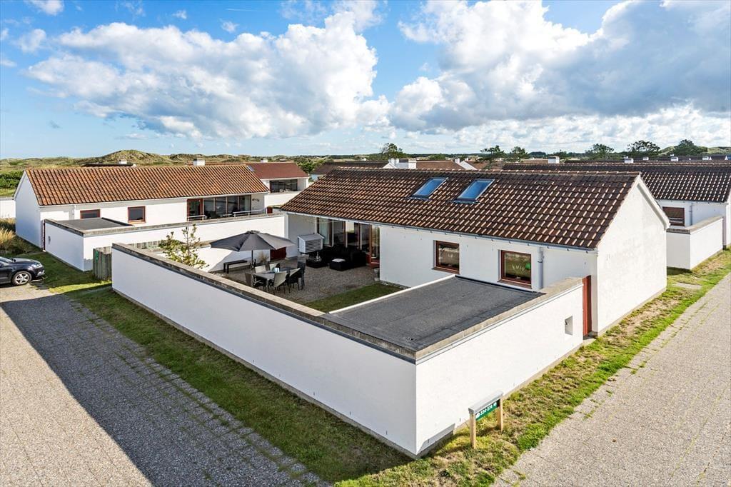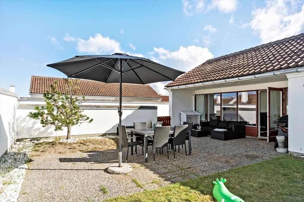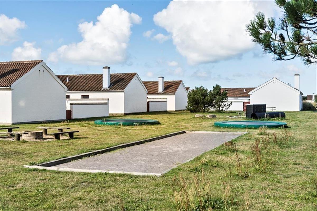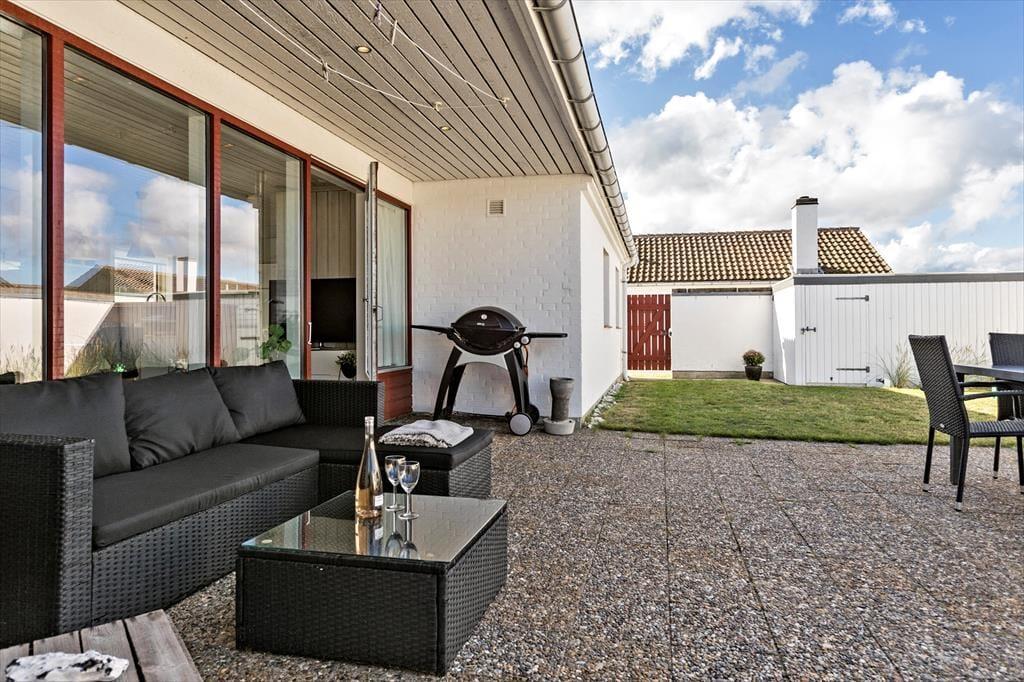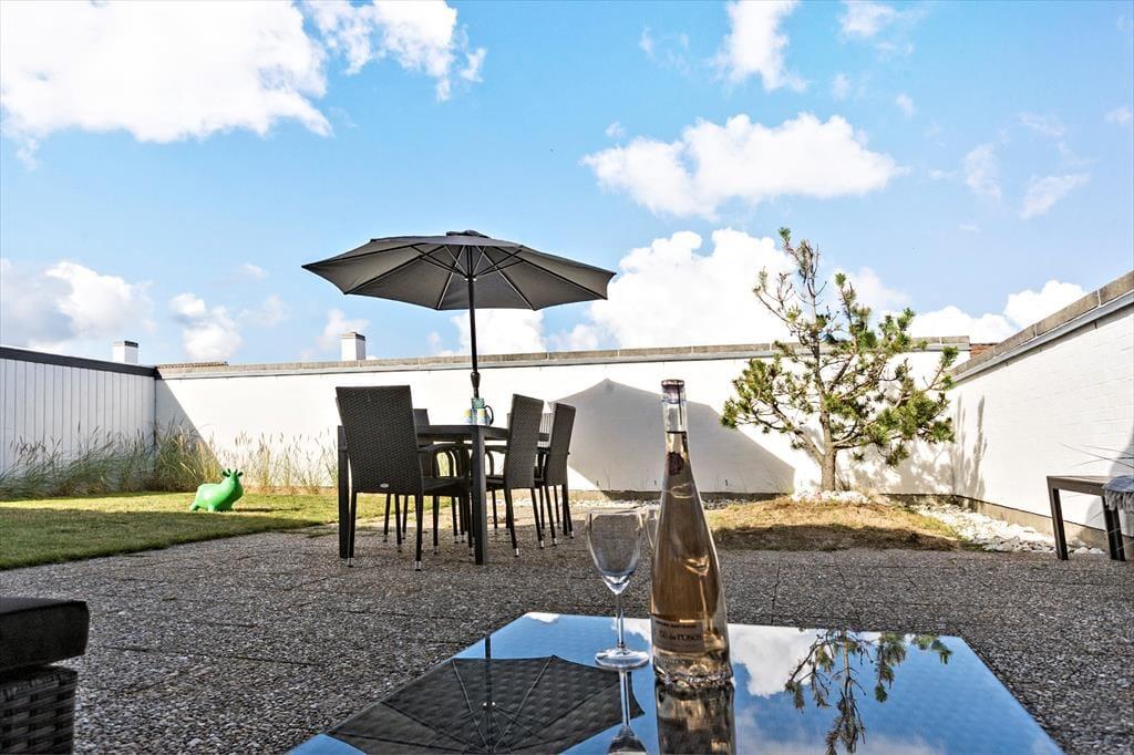 Vom Wohnzimmer aus gelangen Sie direkt in den nach Westen gerichteten Sonnenhof. Dank der Mauer, die den Hof umgibt, ist dieser komplett geschlossen und somit völlig ungestört, schattig und oft vor Wind geschützt. Ein Teil des Hofes ist überdacht und sowohl ein Grill als auch Gartenmöbel, Liegestühle und ein Sonnenschirm stehen Ihnen zur Verfügung. So können Sie wirklich entspannen und das Sommerwetter genießen. Außerdem haben Sie Zugang zu den Gemeinschaftseinrichtungen in der Umgebung, zu denen ein Spielplatz und Trampoline. Oder geniessen Sie die Rauschen des Meeres von der Sonnenterrasse