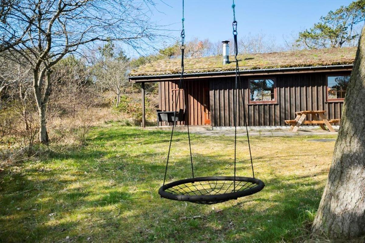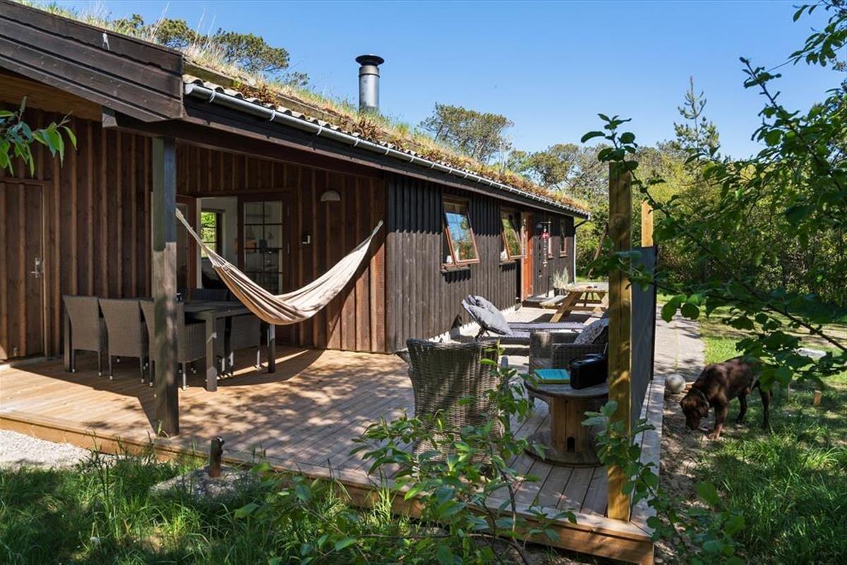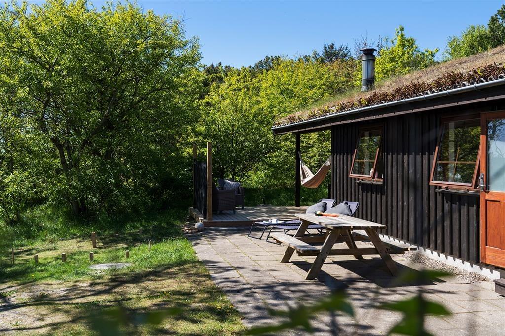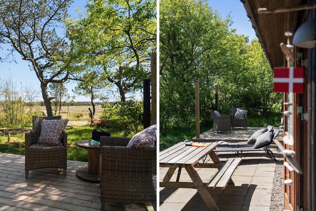 Auf dem großen Naturgrundstück haben Sie gute Möglichkeiten, die Kinder mit dem Ball spielen zu lassen. Die große Terrasse führt rund um das Haus und ist vor dem Wind geschützt. Der dänische Sommer und die vielen Sonnenstunden können auf der Terrasse genossen werden und der Tag wird unter dem überdachten Teil bestens beendet.