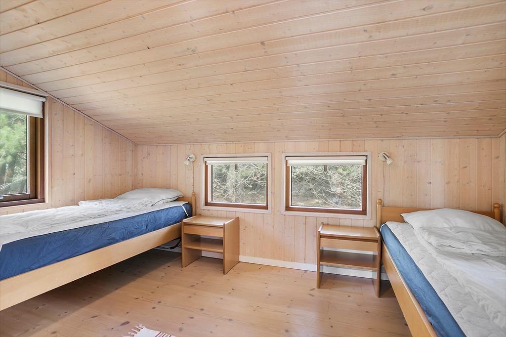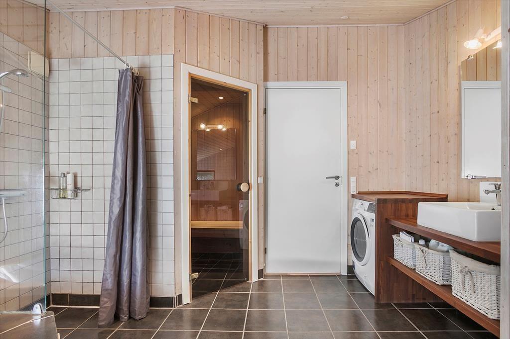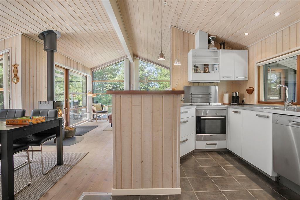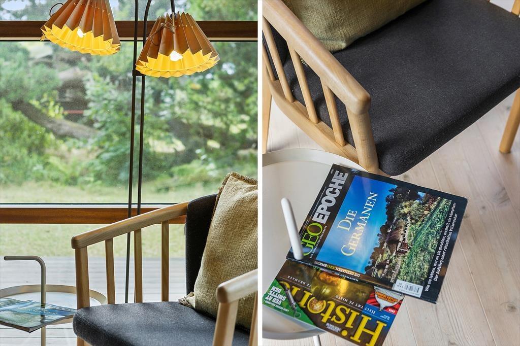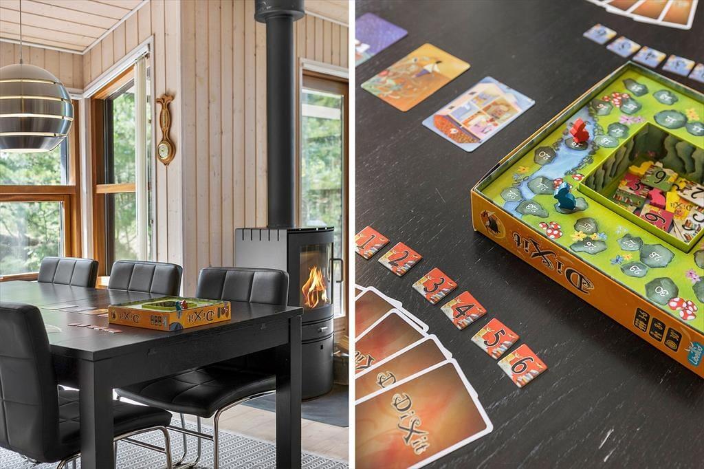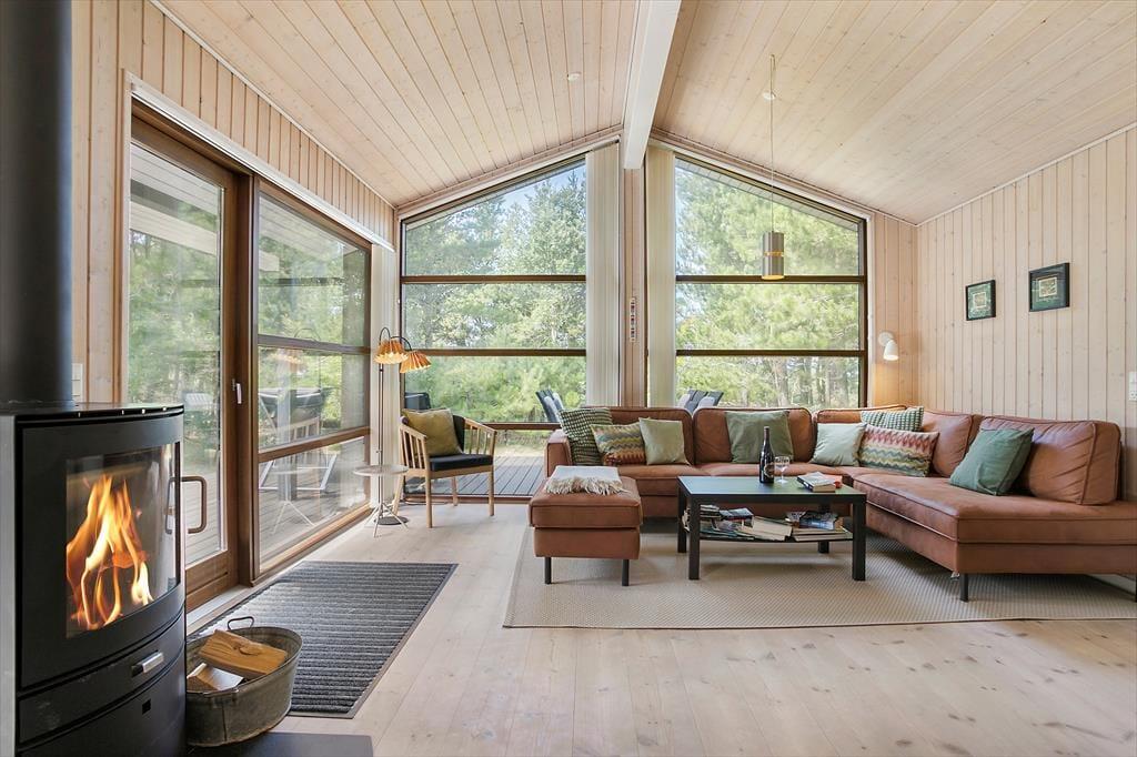 Drinnen werdet ihr von einer hellen und einladenden Atmosphäre empfangen, bei der das hohe Wohnzimmer eine besondere Weite vermittelt. Hier könnt ihr die Gesellschaft des anderen vor dem prasselnden Kaminofen genießen oder euch zum Abendessen am Esstisch versammeln. Die großen Fenster bieten viel Tageslicht und geben euch gleichzeitig die Möglichkeit, das Geschehen im Garten zu verfolgen. Das Haus verfügt außerdem über ein schönes Badezimmer, in der Sauna aufwärmt. Das gesamte Haus ist komfortabel eingerichtet und bietet viele gemütliche Ecken, in denen ihr euch zurückziehen könnt.