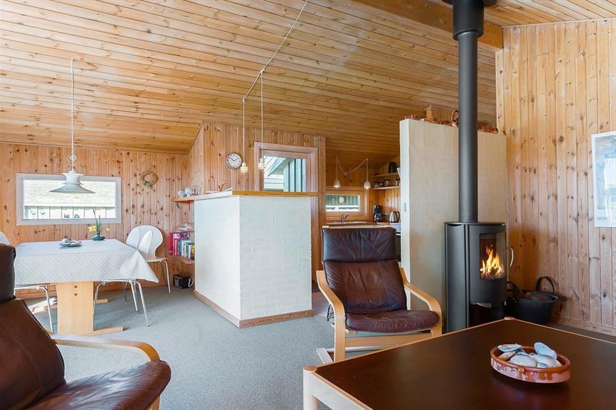 Wenn du das Haus betrittst, wirst du von einem gemütlichen Wohnzimmer empfangen, in dem der charmante Kaminofen eine warme und einladende Atmosphäre schafft. Hier kannst du dich mit Familie und Freunden zusammenfinden, entspannen und die gemeinsame Zeit nach einem Tag in der Natur genießen. Das Ferienhaus ist mit viel Platz für gemütliche Stunden eingerichtet, und die offenen Räume ermöglichen es, sich frei zu bewegen und den Urlaub zu genießen. Die offene Küche und der Essbereich bieten die Möglichkeit, gemeinsam zu kochen, und du kannst das Abwaschen ruhig auf später verschieben, während du am Kamin entspannst.