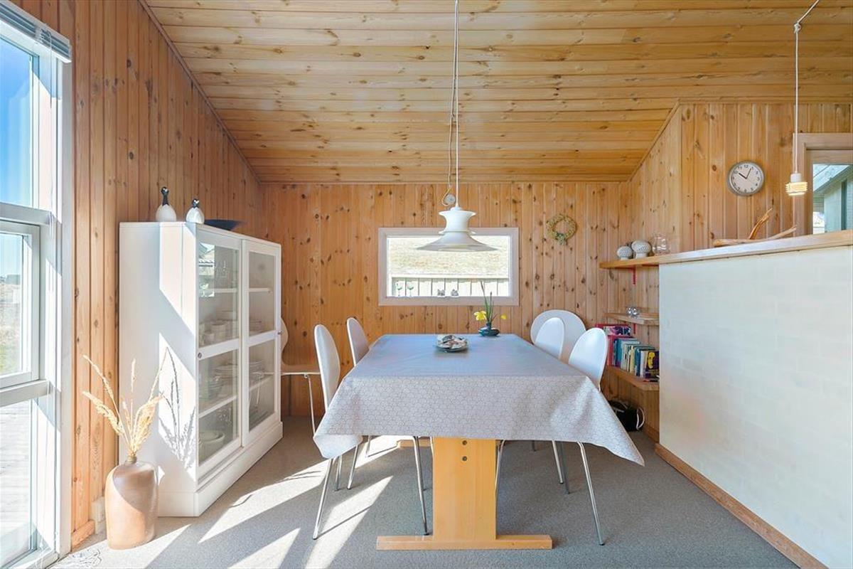 Dieses gemütliche Ferienhaus, das auf einem schönen Naturgrundstück in Rødhus liegt, lädt zu Entspannung und Familienzeit ein. Mit seiner warmen und einladenden Atmosphäre ist es der perfekte Ort, um den Urlaub mit deinen Liebsten zu verbringen. Das Haus ist von tollen Terrassen umgeben, sodass du den ganzen Tag die Sonne genießen kannst – vom ersten Sonnenstrahl am Morgen auf der nach Osten ausgerichteten Terrasse bis zu den langen Sommerabenden, wenn die Sonne über die Landschaft untergeht. Egal, ob du dich auf der Terrasse entspannen oder die Wärme des Kaminofens drinnen genießen möchtest, dieses Ferienhaus ist ideal für einen friedlichen Urlaub inmitten der Natur.