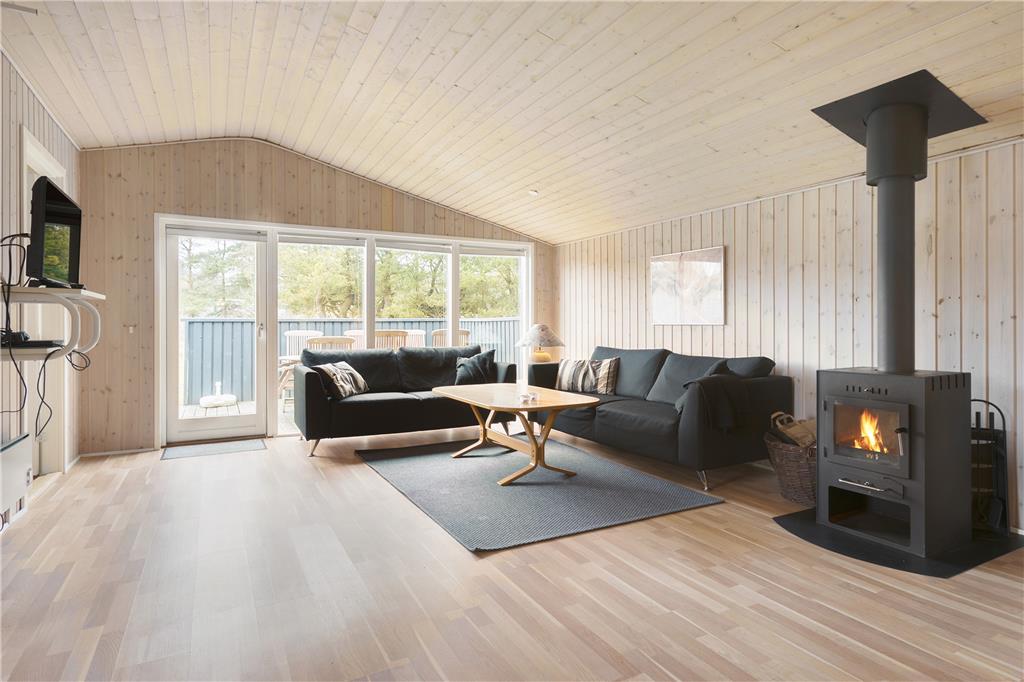 Sobald du das Ferienhaus betrittst, wirst du von einer hellen und einladenden Atmosphäre begrüßt. Das gemütliche Wohnzimmer mit hohen Decken und einem knisternden Kaminofen ist der perfekte Ort, um mit der Familie oder Freunden zusammenzukommen. Hier kannst du dich mit einem guten Buch entspannen, Gesellschaftsspiele spielen oder einfach die Wärme des Feuers nach einem Tag in der Natur genießen. Der offene Küchenbereich macht es einfach, gemeinsam Mahlzeiten zuzubereiten, und die helle Einrichtung sorgt für eine entspannte Urlaubsatmosphäre. Egal, ob du Zeit zum Kochen oder einfach nur zum Entspannen verbringen möchtest, hier ist eine warme und einladende Atmosphäre, die es leicht macht, zur Ruhe zu kommen.