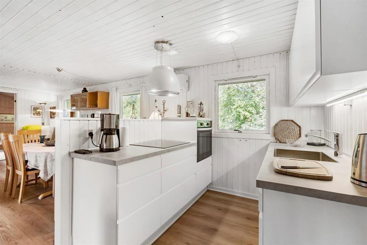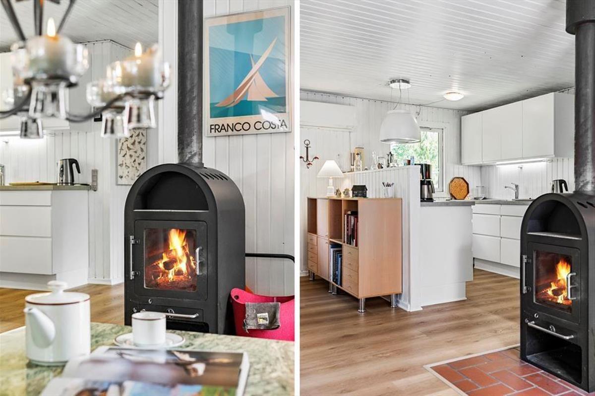 Tritt ein in dieses gemütliche Ferienhaus, das mit hellen Farben und warmen Holzelementen eine heimelige Atmosphäre schafft. Das Wohnzimmer ist geräumig und einladend mit großen Fenstern, die das Licht der Natur hereinlassen, während der knisternde Kaminofen an kühleren Abenden eine gemütliche Stimmung erzeugt. Der offene Grundriss bietet viel Platz, sodass die ganze Familie zusammenkommen kann, um zu entspannen oder gemeinsame Aktivitäten zu genießen. Hier gibt es ausreichend Raum, um sich auf den komfortablen Möbeln zu entspannen, und wenn es Zeit zum Kochen ist, wartet die gut ausgestattete Küche darauf, genutzt zu werden. Das schöne Badezimmer mit Fußbodenheizung sorgt dafür, dass ihr das ganze Jahr über Wärme und Komfort genießen könnt.