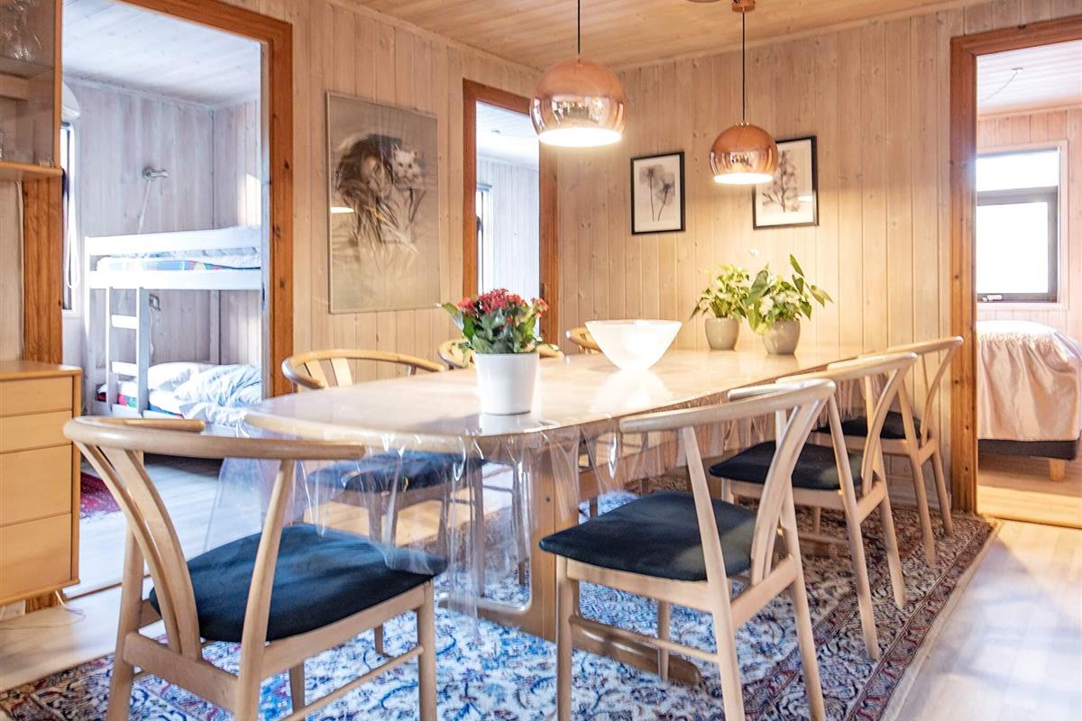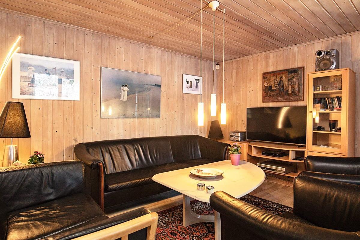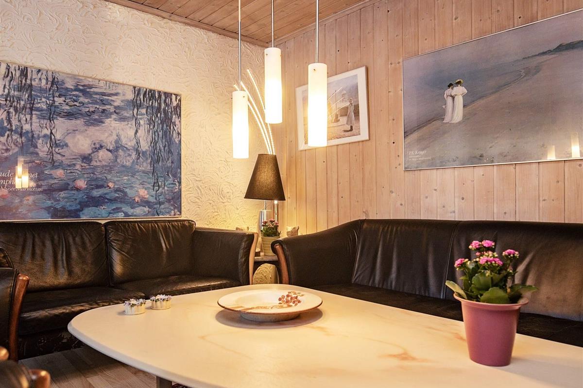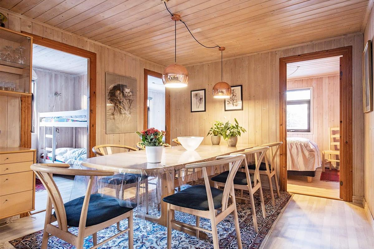 Die Inneneinrichtung ist im klassisch dänischen Ferienhausstil gehalten, wobei der Schwerpunkt auf Wohlbefinden und Gemütlichkeit liegt. Der Eigentümer hat das Haus mit viel Fingerspitzengefühl und Gespür für Licht und Farben eingerichtet. TV-Sender können über das Viasat Gold-Paket geguckt werden. Für gemütliche Abende und günstiges Heizen gibt es im Wohnbereich einen Holzofen. Außerdem wurde eine klimafreundliche Wärmepumpe installiert. Es gibt Highspeed-Internet 100/100 Mbit.