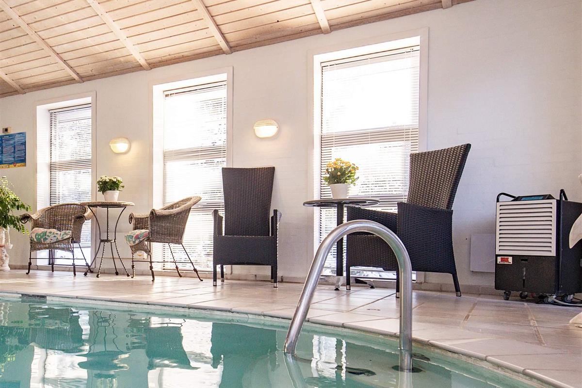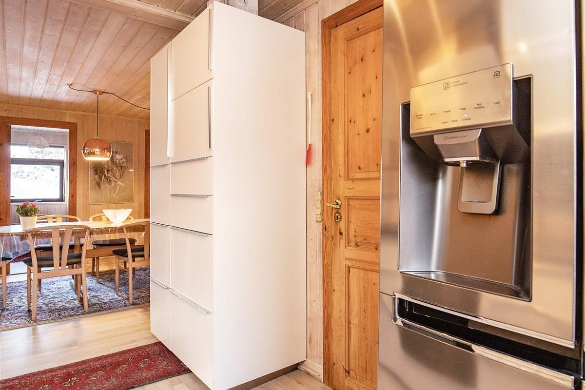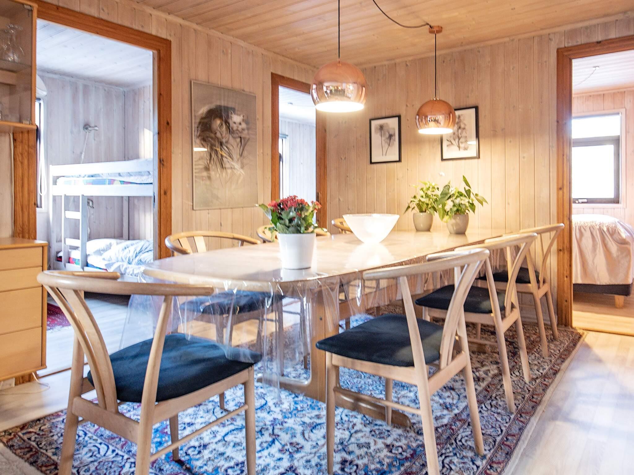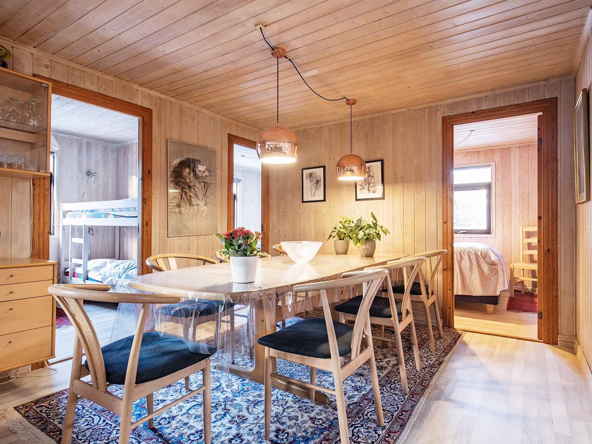 Die Inneneinrichtung ist im klassisch dänischen Ferienhausstil gehalten, wobei der Schwerpunkt auf Wohlbefinden und Gemütlichkeit liegt. Der Eigentümer hat das Haus mit viel Fingerspitzengefühl und Gespür für Licht und Farben eingerichtet. TV-Sender können über das Viasat Gold-Paket geguckt werden. Für gemütliche Abende und günstiges Heizen gibt es im Wohnbereich einen Holzofen. Außerdem wurde eine klimafreundliche Wärmepumpe installiert. Es gibt Highspeed-Internet 100/100 Mbit.