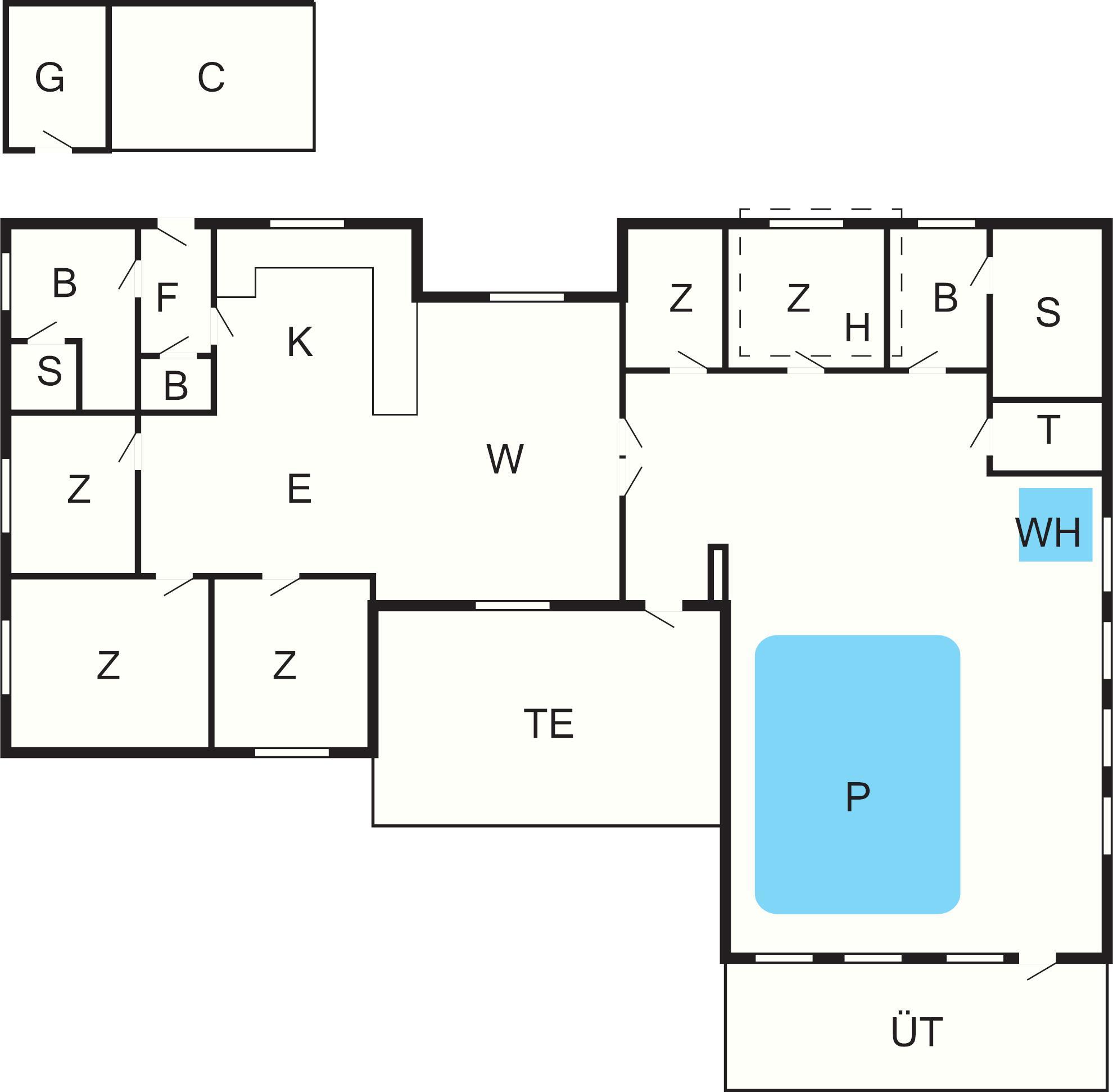 Der Poolbereich wird sicherlich zum beliebtesten Treffpunkt des Hauses werden. Hier lockt, zusätzlich zum 18 m² großen Becken, ein großer Whirlpool für bis zu 8 Personen.