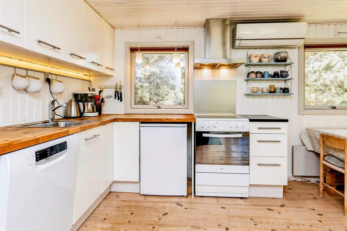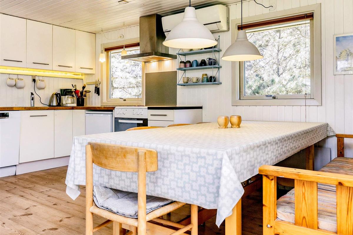 Älteres, traditionelles Ferienhaus in der Nähe von Rødhus Strand. Das Haus ist im klassischen dänischen Stil gehalten und gemütlich eingerichtet. Große Wohnküche mit Holzofen und Zugang zu einer großen Terrasse.