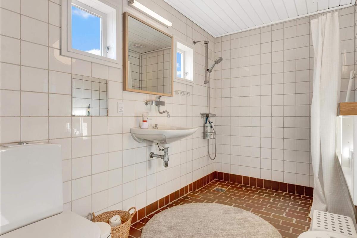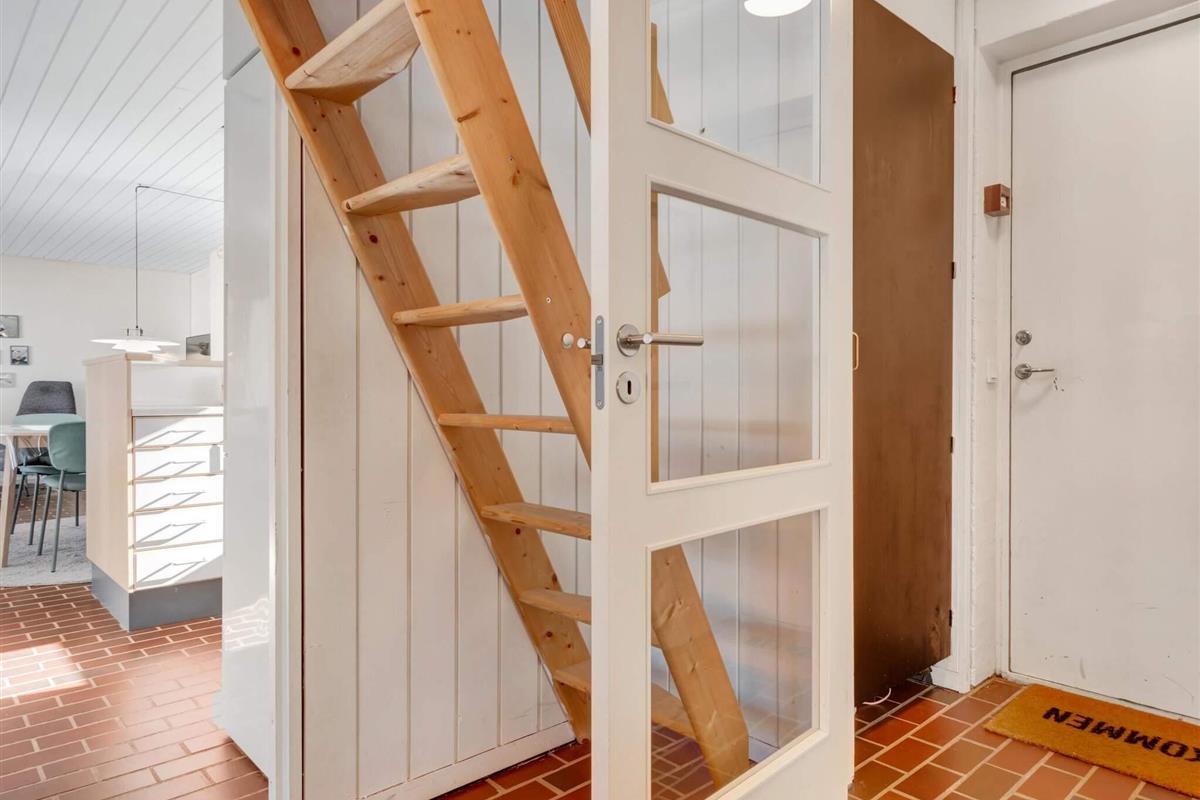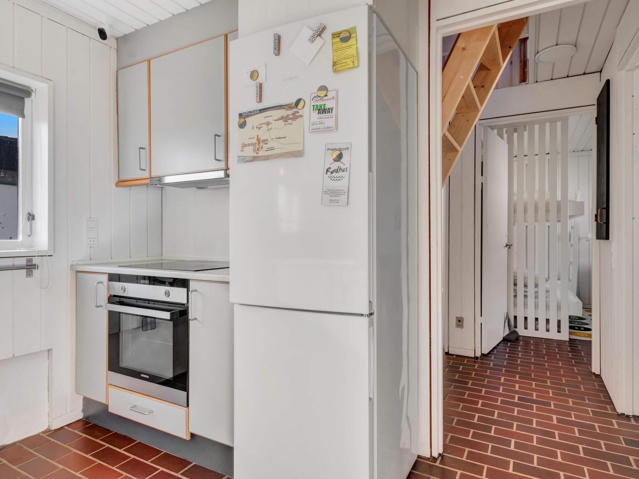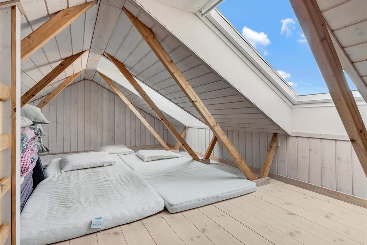 Dieses charmante Ferienhaus in einer ruhigen Gegend von Rødhus ist ein gemütlicher Rückzugsort. Wenn du reinkommst, gibt's eine Eingangshalle, wo du Jacken und Schuhe unterbringen kannst. Der Flur führt zu einem Badezimmer und einem vielseitigen Schlafzimmer mit Etagenbetten und einem Doppelbett. Eine Treppe rechts führt zu einem geräumigen, hellen Loft mit Dachfenstern, das sich super als zusätzlicher Schlafbereich eignet. Weiter den Flur runter ist ein zweites Schlafzimmer mit zwei Einzelbetten.