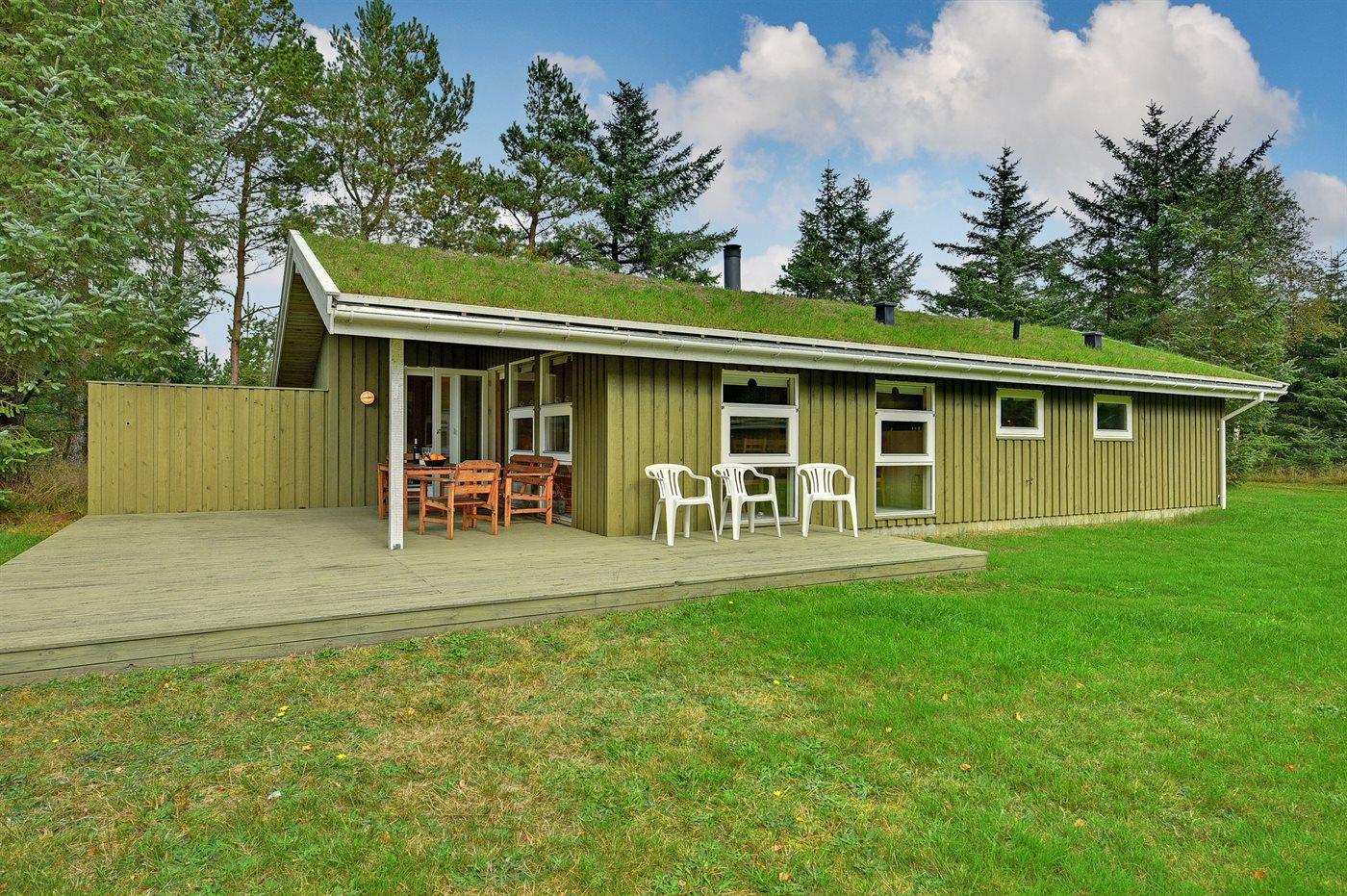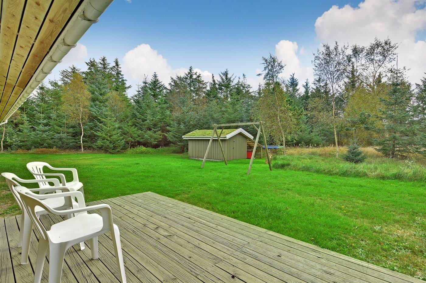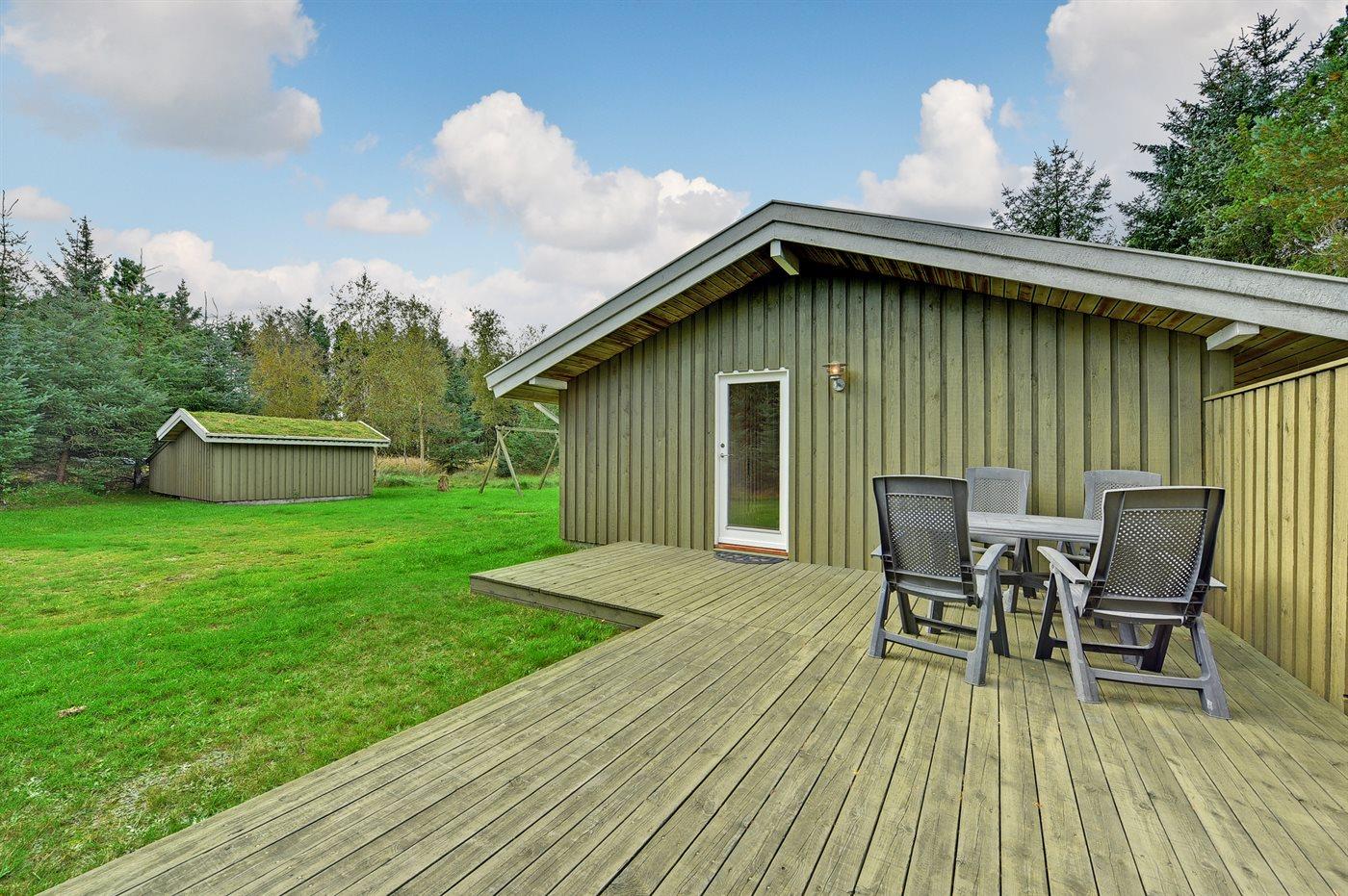 De vakantiewoning is gelegen op een 8000 m² groot natuural grond. Afstand tot de zee 2000 m. Dichtstbijzijnde winkel 7000 m. Bij de vakantiewoning hoort 42 m² terras. Daarnaast is er een 10 m² groot overdekt terras. Gereedschapsruimte. Schommel. Zandbak. Parkeerplaats bij het huis.