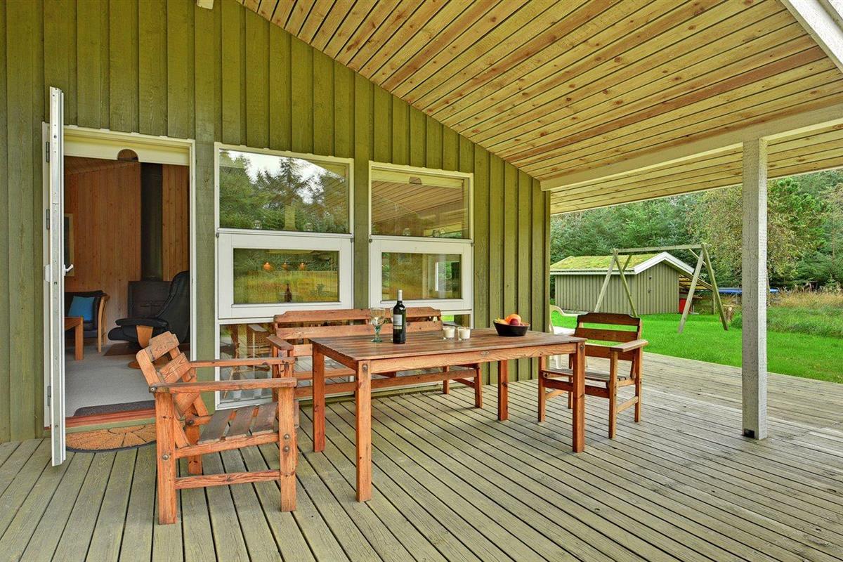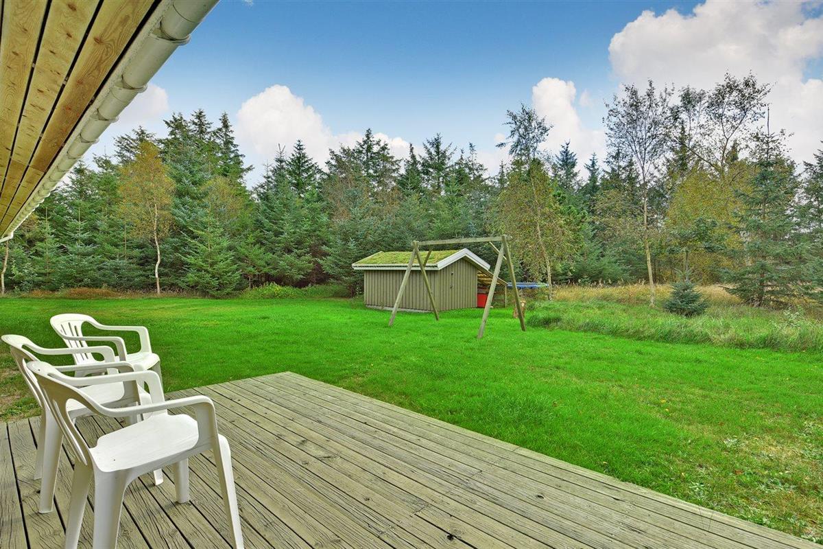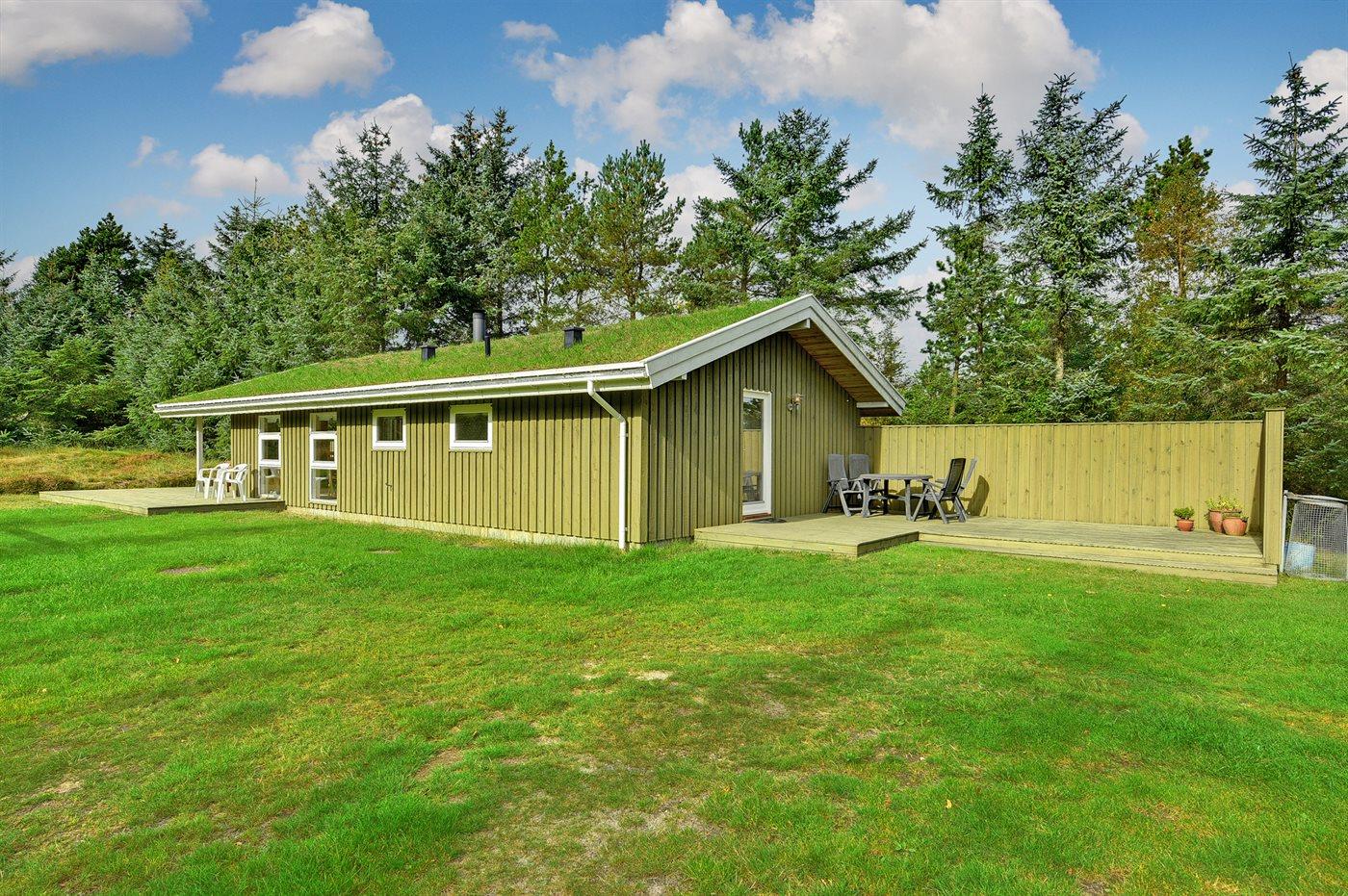 De vakantiewoning is gelegen op een 8000 m² groot natuural grond. Afstand tot de zee 2000 m. Dichtstbijzijnde winkel 7000 m. Bij de vakantiewoning hoort 42 m² terras. Daarnaast is er een 10 m² groot overdekt terras. Gereedschapsruimte. Schommel. Zandbak. Parkeerplaats bij het huis.