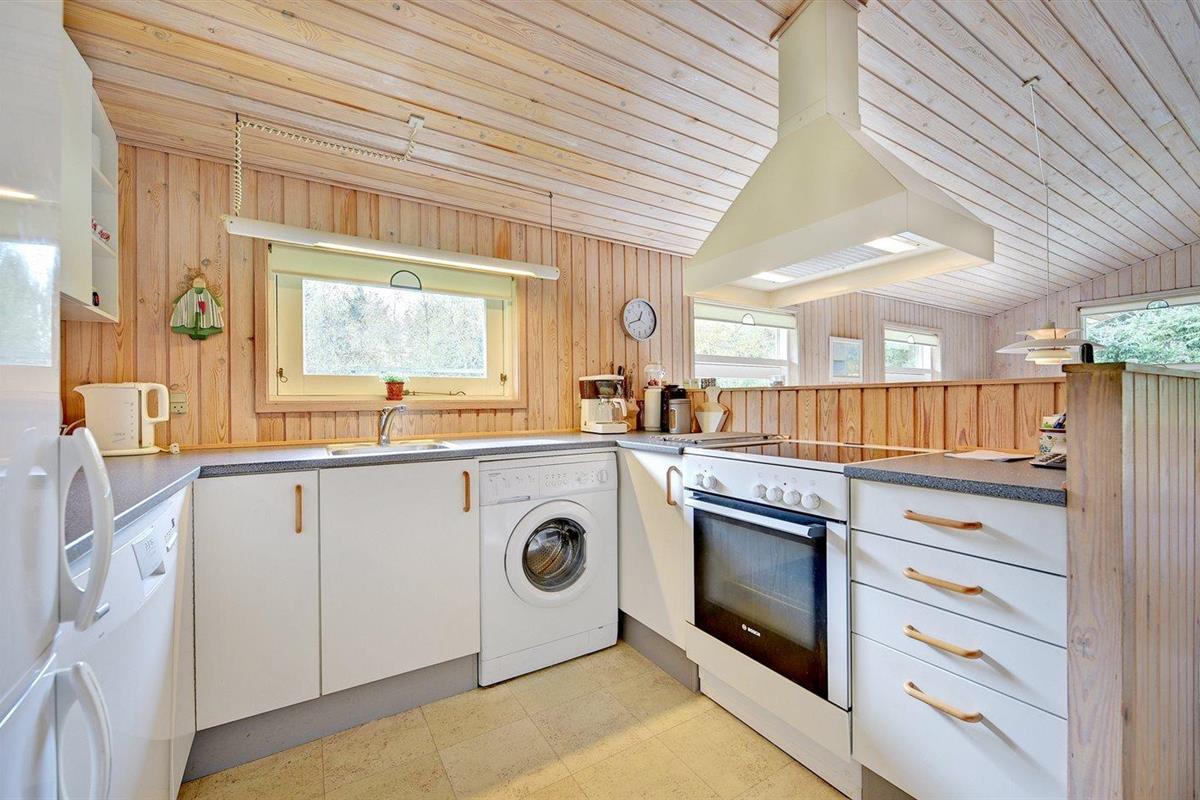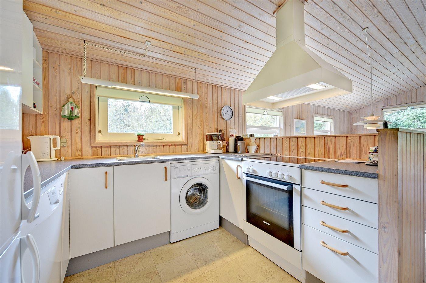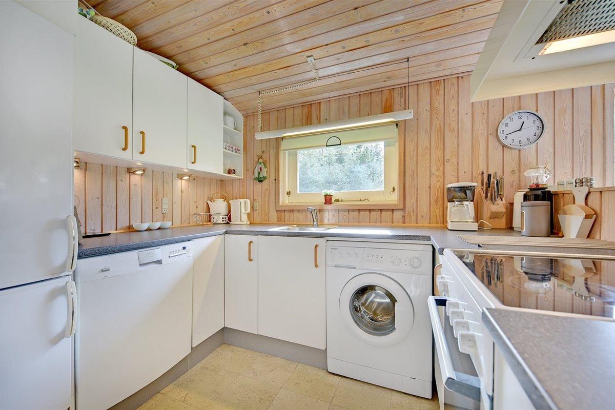 De keuken is uitgerust met koelkast Er is 4 elektrische kookplaten, heteluchtoven, magnetron en vaatwasser.