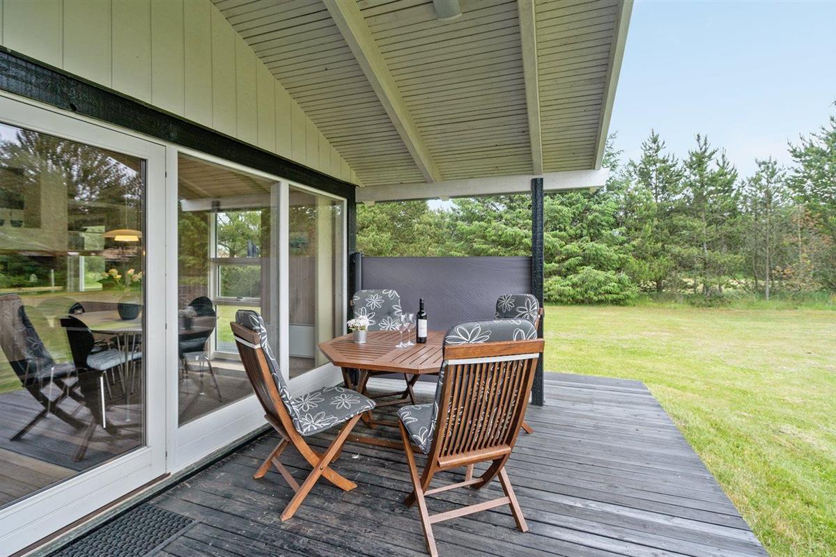 De vakantiewoning is gelegen op een 1200 m² groot natuural grond. Afstand tot de zee 1100 m. Dichtstbijzijnde winkel 5000 m. Bij de vakantiewoning hoort 12 m² terras. Daarnaast is er een 8 m² groot overdekt terras.