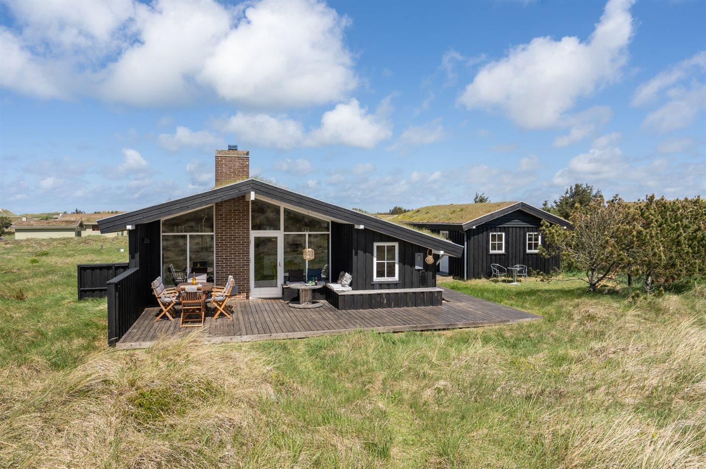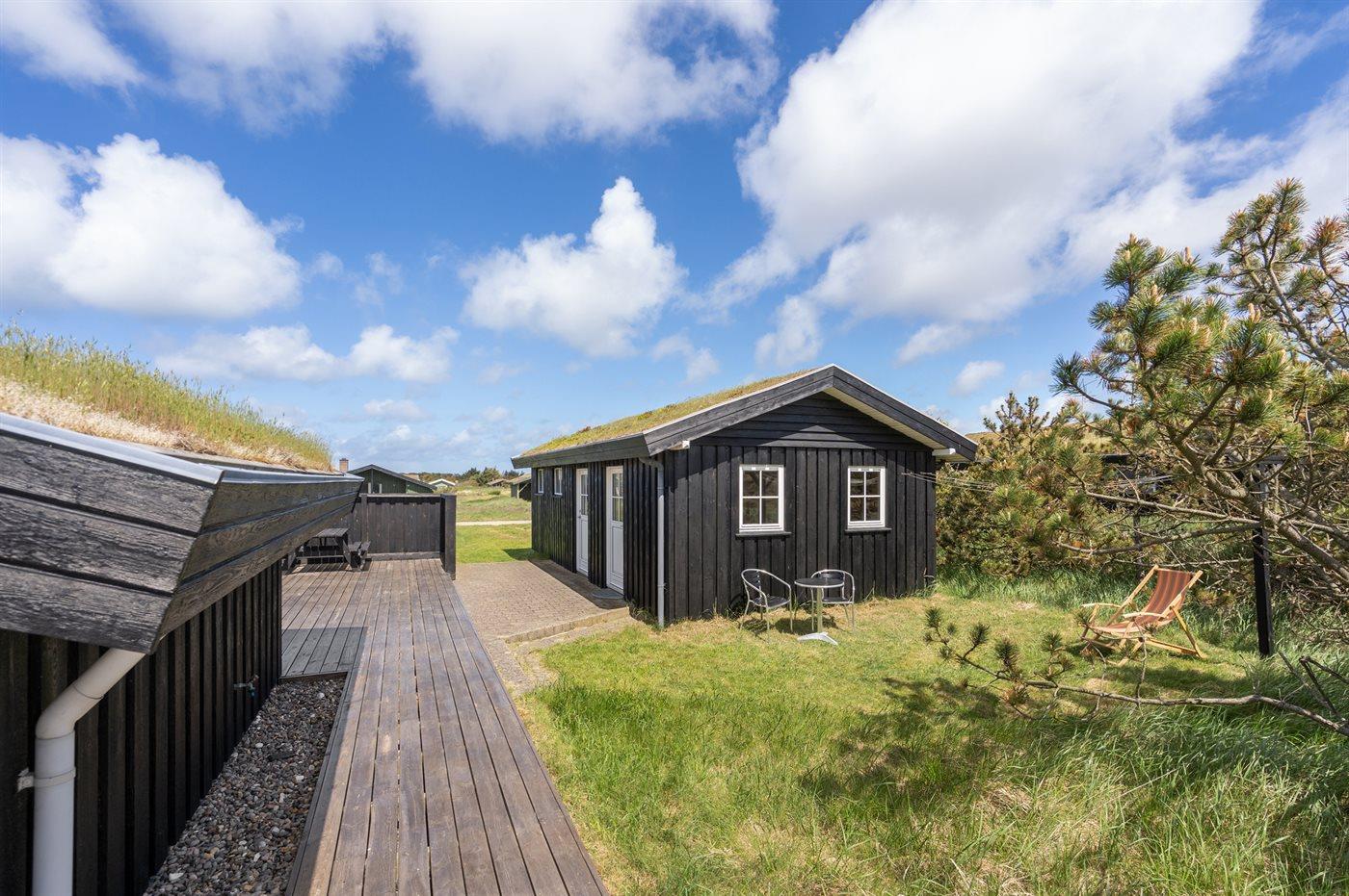 De vakantiewoning is gelegen op een 1750 m² groot Duingrond. Afstand tot de zee 500 m. Dichtstbijzijnde winkel 2000 m. Bij de vakantiewoning hoort 70 m² terras. Daarnaast is er een 12 m² groot overdekt terras. Gereedschapsruimte.Garage ter beschikking. Parkeerplaats bij het huis.