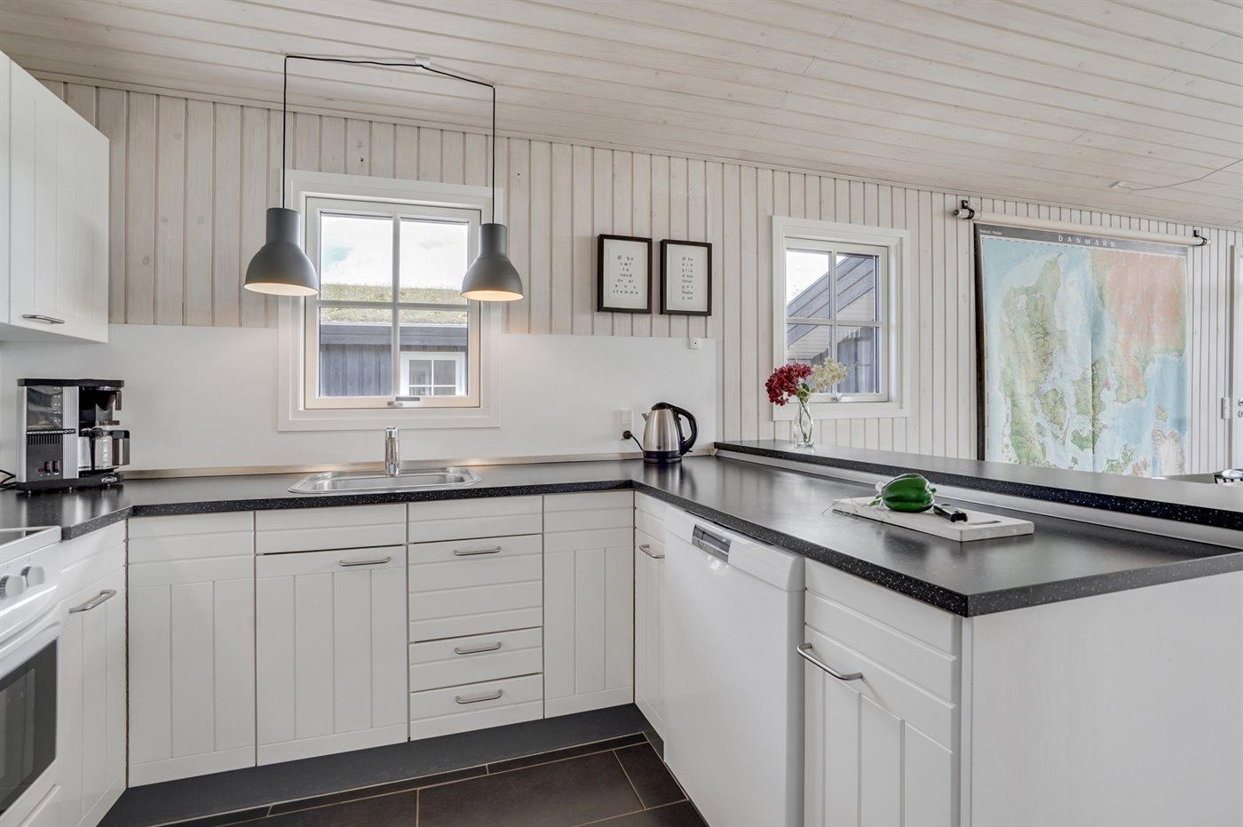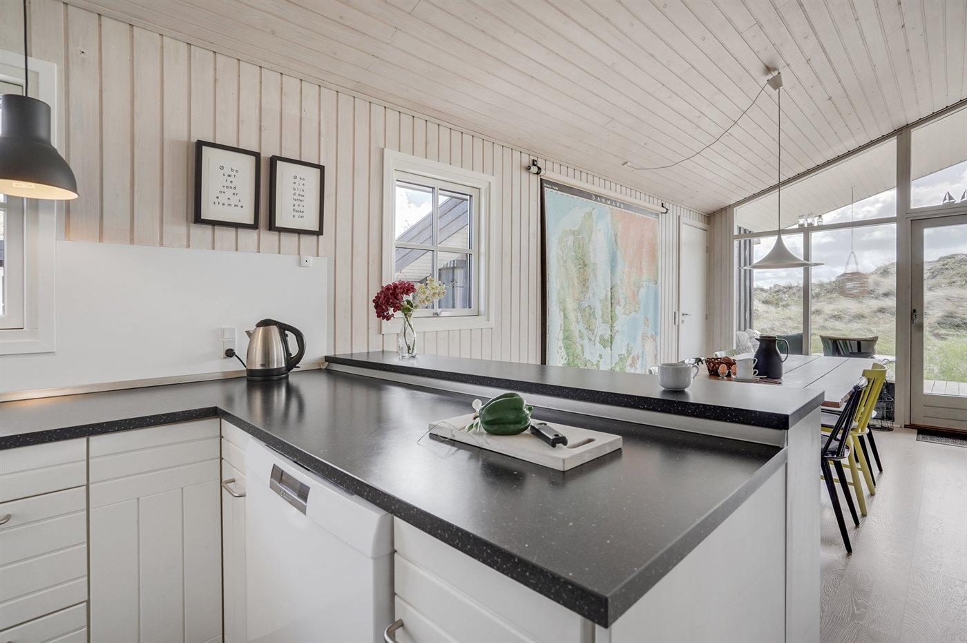 De keuken is uitgerust met koelkast Er zijn 4 keramische kookplaten, heteluchtoven en vaatwasser.