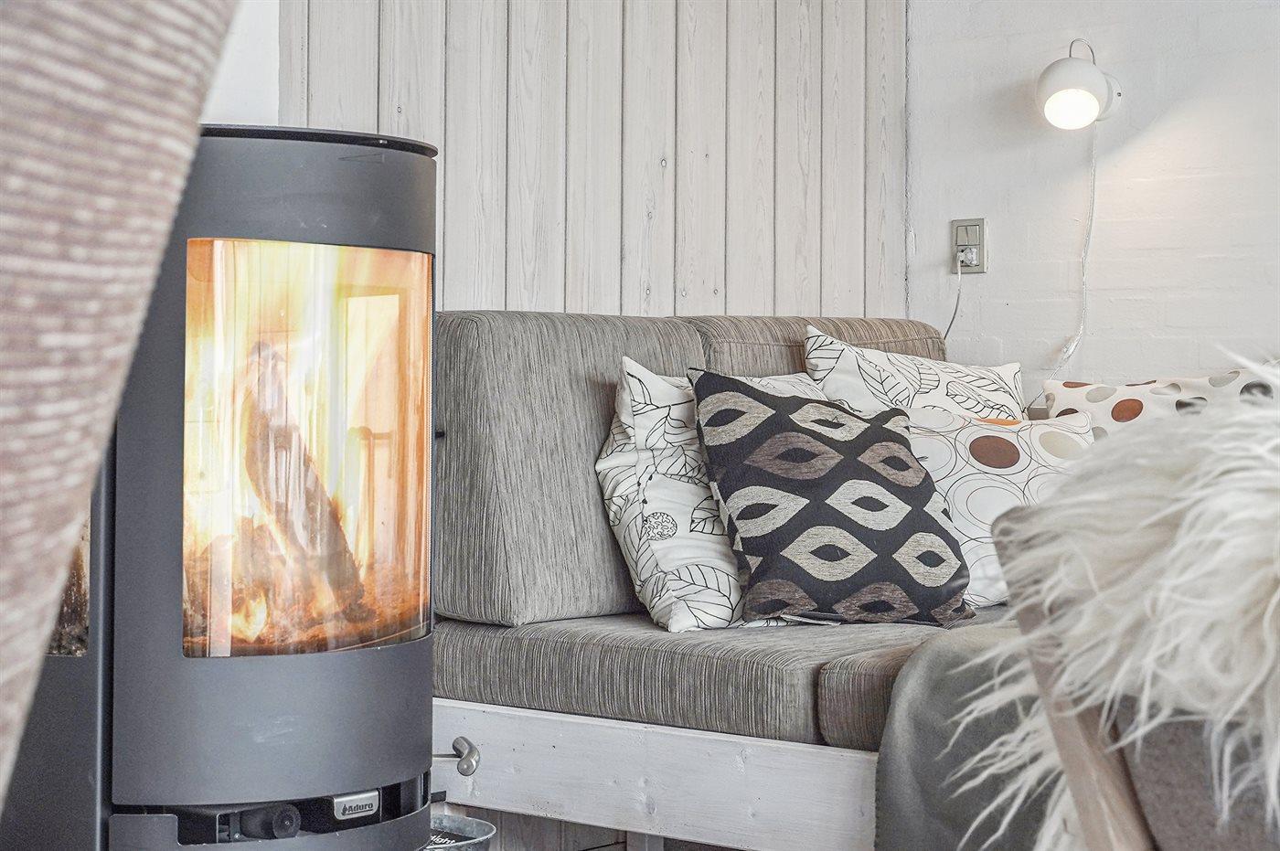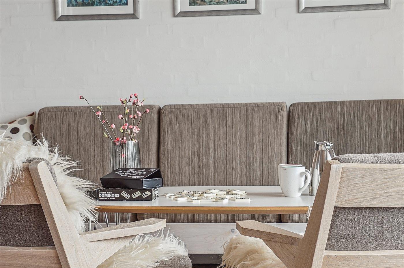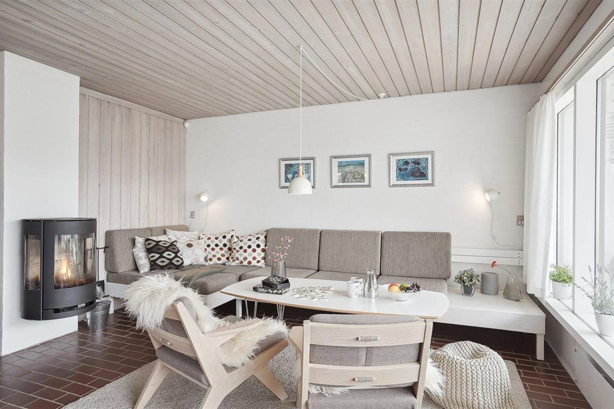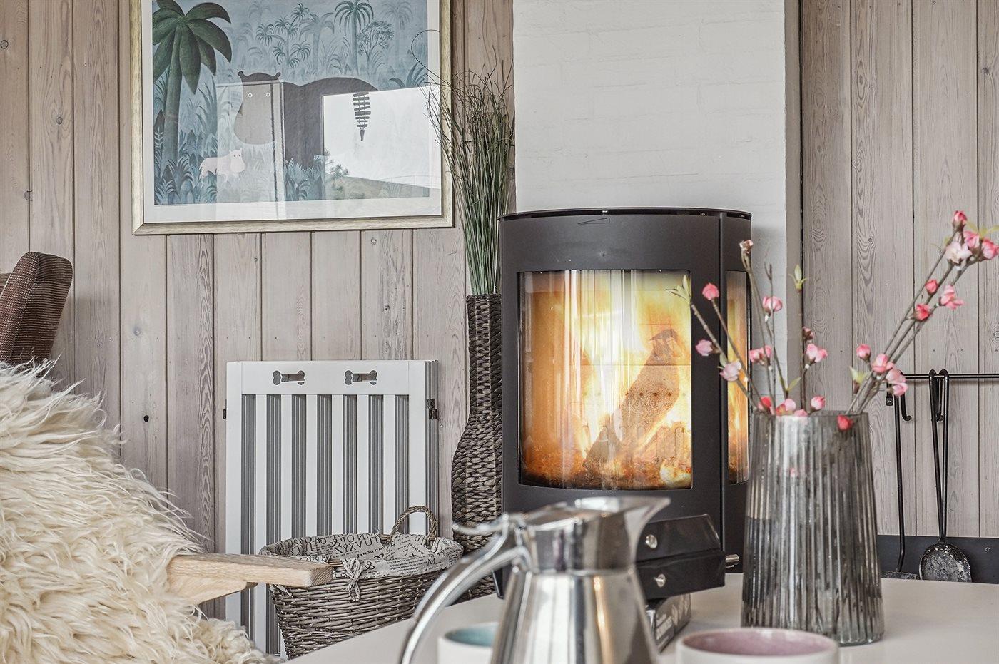 Gezellig vakantieappartement in Rødhus met zeezicht, 2 slaapkamers, houtkachel en omheind terras dichtbij het strand.