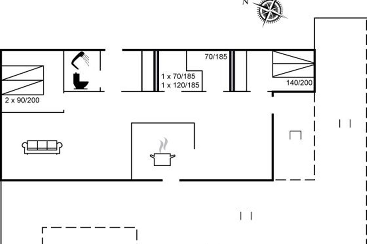 De vakantiewoning is gelegen op een 3888 m² groot Duingrond. Afstand tot de zee 190 m. Dichtstbijzijnde winkel 7500 m. Bij de vakantiewoning hoort 60 m² terras. Daarnaast is er een 8 m² groot overdekt terras. Zandbak. Parkeerplaats bij het huis.